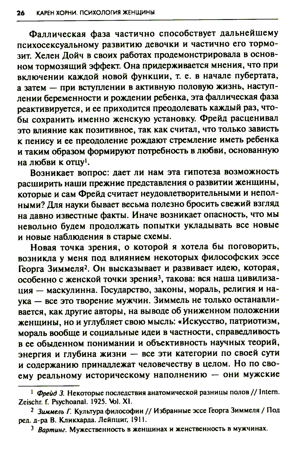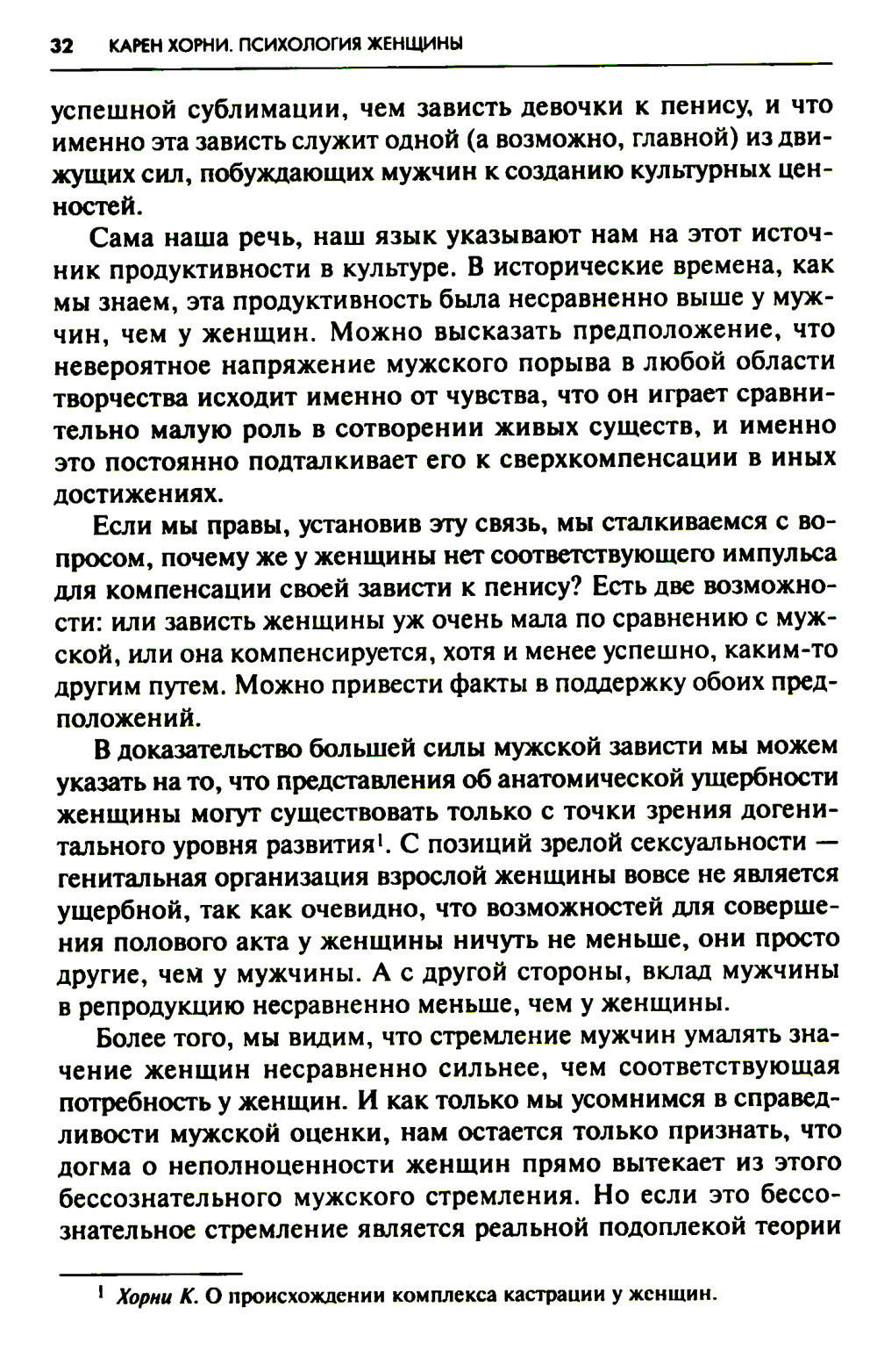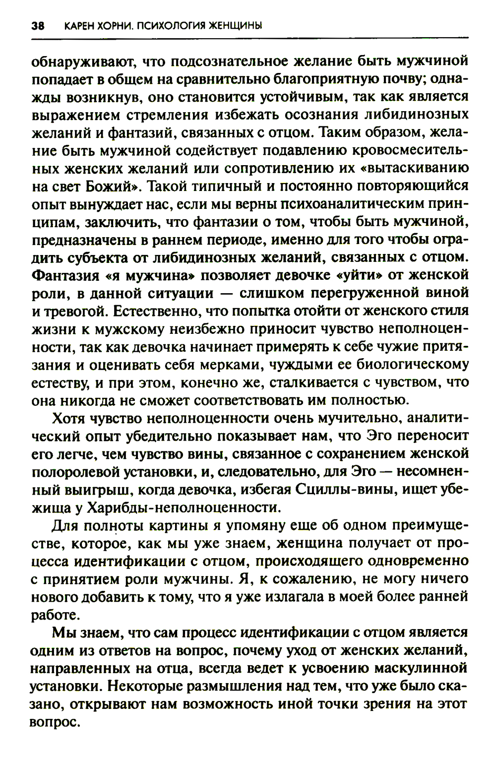 Карен Хорни (1885-1952) - первая в истории женщина-психиатр, по праву считающаяся основоположником женской психологии. К. Хорни вступает в жесткую полемику с «либидозной» теорией Венской школы психоанализа, которая, по мнению Хорни, лишь унижает в женщинах человеческое достоинство. В противовес «мужской психологии» Фрейда доктор Хорни создает женскую психологию. Типичное представление К. Хорни как феминистки не вполне корректно. Восхищение с ее стороны социальными преобразованиями России начала XX в. и защитой прав материнства в Советской России объясняет реальные взгляды Хорни на феминизм и эмансипацию. В данной книге, объединившей лучшие статьи К. Хорни, посвященные женской психологии, поднимаются проблемы, актуальные и в наши дни. Феномен «психологической любовной зависимости» и «сверхсильной любви», характерный для женщин, Карен Хорни объясняет повышенной тревожностью. Эта гипотеза женщины-аналитика нашла подтверждение в современных психологических исследованиях, посвященных психологии личности и аддиктивным расстройствам. На взгляды К. Хорни значительное влияние оказала дружба с философом Э. Фроммом. Вместе они пришли к выводу о том, что подлинная любовь - это не чувство, а способность зрелой личности, позволяющая человеку «выстроить мост над пропастью одиночества». Книга рекомендована специалистам в области психологии, психотерапии, практикующим психологам и всем, кто интересуется глубинными психологическими процессами женской личности.| Издательство | Академический проект |