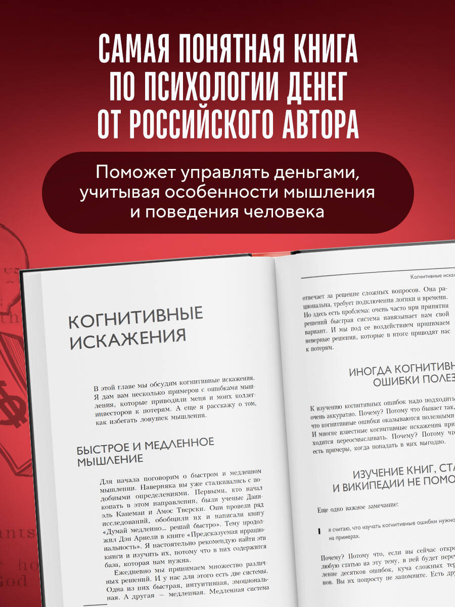 Активы дорожают и дешевеют из-за людей. Биржи обваливаются из-за людей. Паника на рынке происходит из-за людей. Успех в инвестировании зависит не столько от понимания финансовых процессов, сколько от поведения людей. Но почему-то многие об этом не думают. Изучают фундаментальный анализ, диверсифицируют портфель, погружаются в новые направления и… стоят на месте. Хотя ключевое звено всей финансовой системы - человек и его психология. - Как не попадаться на уловки продавцов и ушлых дельцов? - Как снизить уровень тревожности на финансовой почве? - Как действовать хладнокровно в моменты паники на рынках? Анар Бабаев - инвестор, предприниматель и маркетолог - вывел инвестиционных тараканов из своей головы и не раз вылезал из финансовой депрессии. На страницах этой книги он делится своей историей и практическими советами, которые станут вашим проводником в психологии денег.| Издательство | ООО "Издательство "Эксмо" |