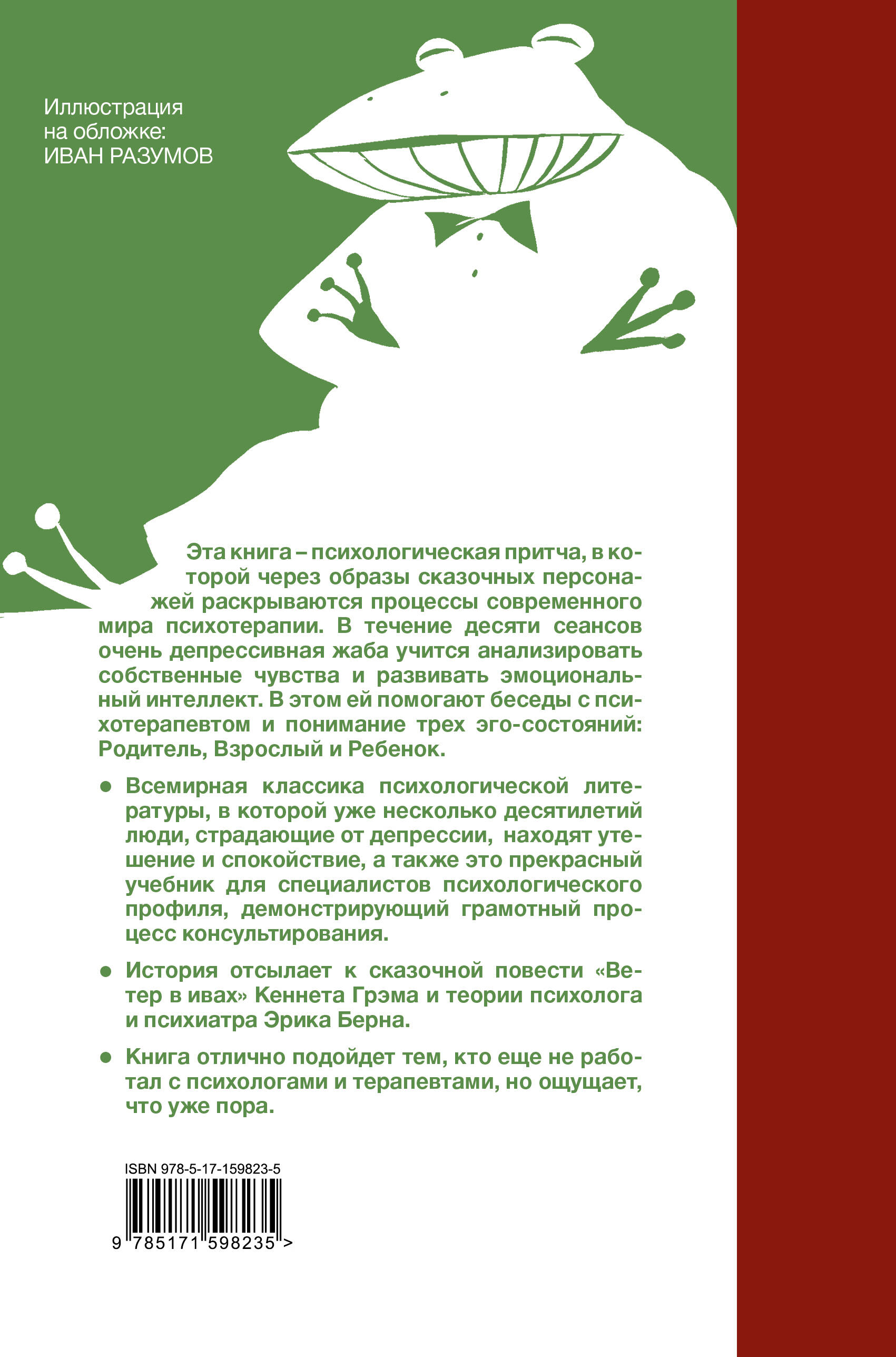Эта книга - психологическая притча, в которой через образы сказочных персонажей раскрываются процессы современного мира психотерапии. В течение десяти сеансов очень депрессивная жаба учится анализировать собственные чувства и развивать эмоциональный интеллект. В этом ей помогают беседы с психотерапевтом и понимание трех эго состояний: Родитель, Взрослый и Ребенок. Это всемирная классика психологической литературы, в которой уже несколько десятилетий люди, страдающие от депрессии, находят утешение и спокойствие, а также это прекрасный учебник для специалистов психологического профиля, демонстрирующий грамотный процесс консультирования.| Издательство | Издательство "АСТ" |