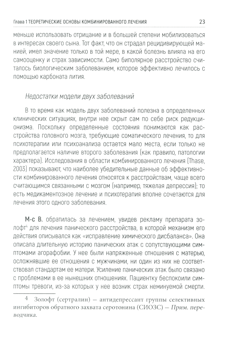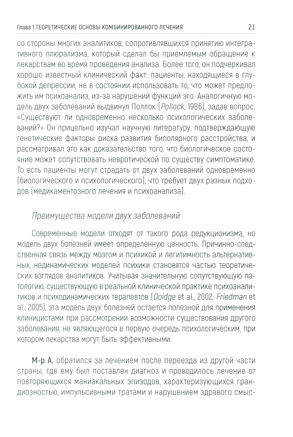 В книге рассматриваются теоретические, клинические и технические проблемы, возникающие при совмещении медикаментозного лечения и психотерапии. Особое внимание в книге уделено терапевтическим взаимоотношениям, возникающим при таком комбинированном лечении. Приведенные авторами клинические примеры помогут специалисту лучше понять особенности психотерапевтического процесса, возникающие в этом случае. Несмотря на то, что эти проблемы рассматриваются в контексте психодинамического или психоаналитического подходов, книга будет полезна для врачей, консультантов и психотерапевтов, работающих и в других модальностях.