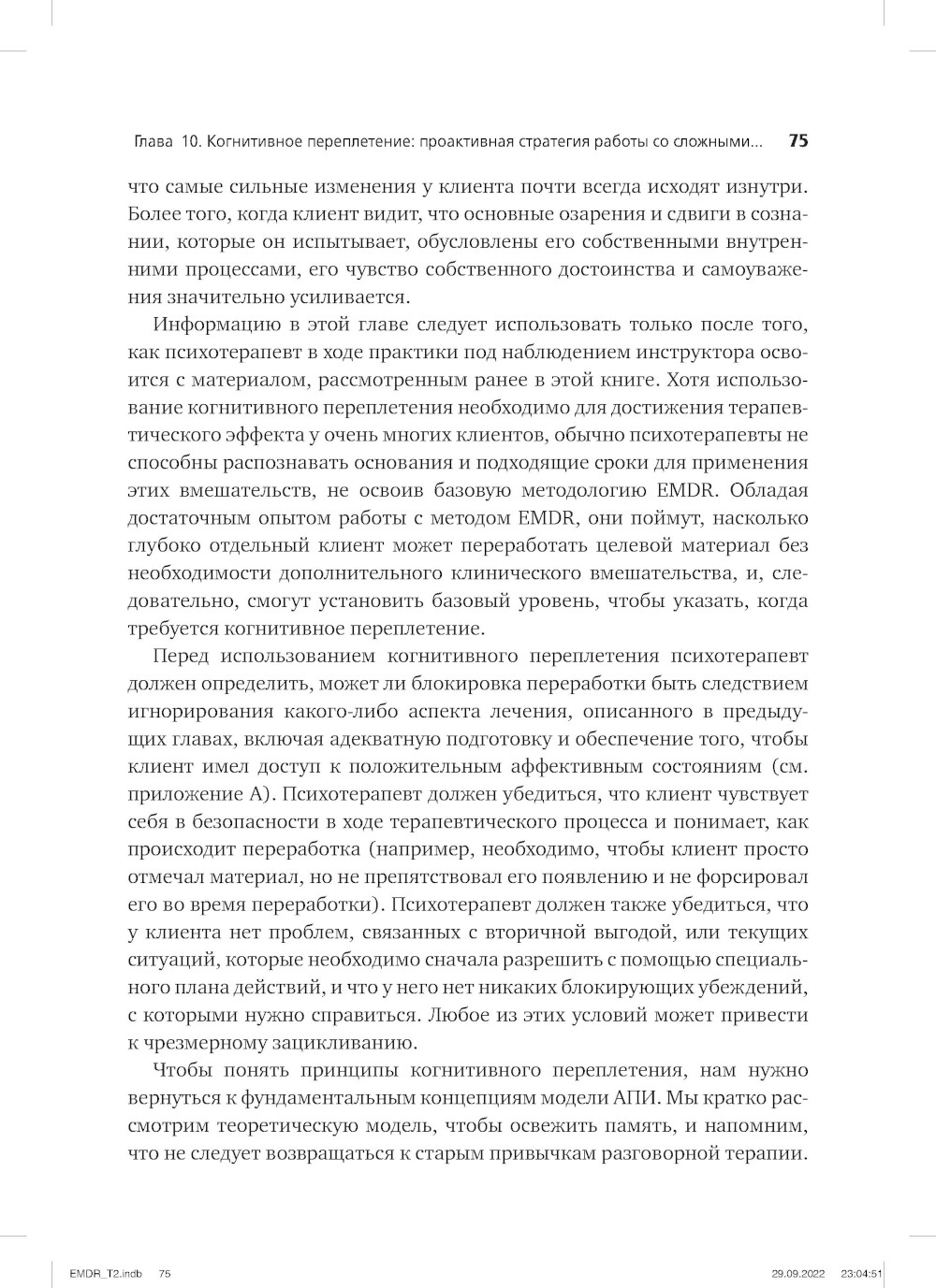 В книге излагается научно обоснованный метод, изначально разработанный для лечения посттравматического стрессового расстройства. Создатель EMDR-терапии Фрэнсин Шапиро рассматривает теоретические и эмпирические основы терапии, подробно описывает этапы лечения и предоставляет учебные материалы. В этом издании изложены новые достижения в области EMDR-терапии, результаты клинических и нейрофизиологических исследований, полученные за последние 15 лет, а также новые и модифицированные протоколы и процедуры. В книге обсуждаются дополнительные области применения EMDR-терапии, включая лечение сложных травм, зависимостей, эмоциональную и физическую боль, депрессию и моральные травмы, а также меры реагирования после стихийных бедствий. В приложениях к книге приведены протоколы сеансов, клинические руководства и описание средств для оценки достоверности и результатов лечения.| Издательство | Диалектика |