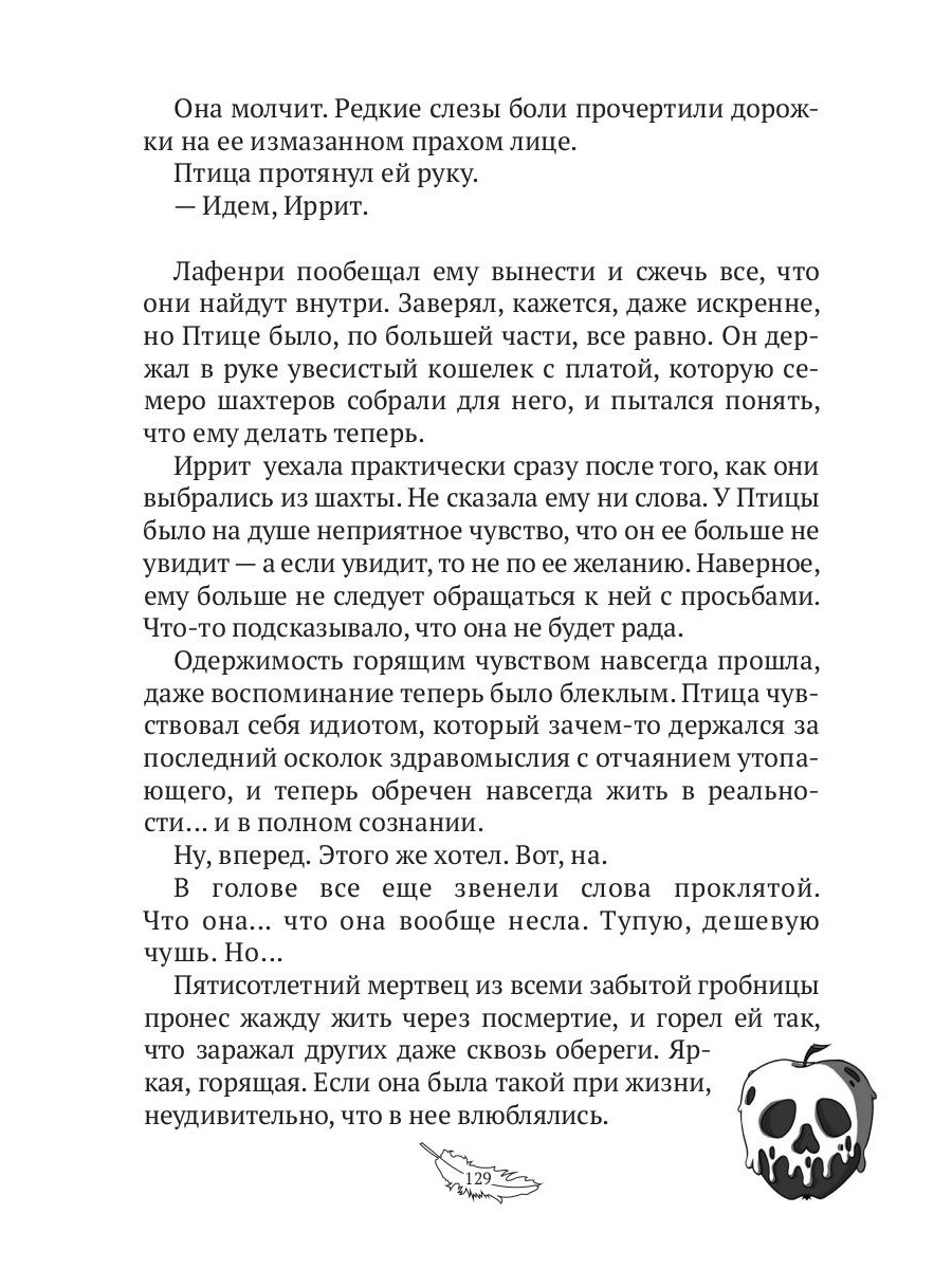 Смерть - единственный бог, что всегда приходит на зов. Птица знает это лучше других. Он приносит смерть с собой на острие клинка. Он - наемный убийца, и был им так давно, что больше ничего не осталось. У Птицы нет имени, нет родины, нет близких в этом мире под двумя солнцами. У него нет никого, кроме внутренних монстров. Он бежит от заказа к заказу, чтобы не оставаться наедине с собой. За сказкой, которая оборачивается печально и прозаически. Притворяясь прекрасным принцем, чтобы разочароваться в красоте. Раскрывая, что на самом деле произошло в старых легендах. Оборачиваясь пустышкой каждый раз, когда заказ завершен, а чужая жизнь прервана. Тихие монстры живут внутри каждого. Легко не заметить, как они постепенно выедают душу изнутри. Что лучше - выгореть или исчезнуть? Продолжать притворяться или признать, что все, что ты знаешь - твоя собственная выдумка?| Издательство | Т8 RUGRAM |