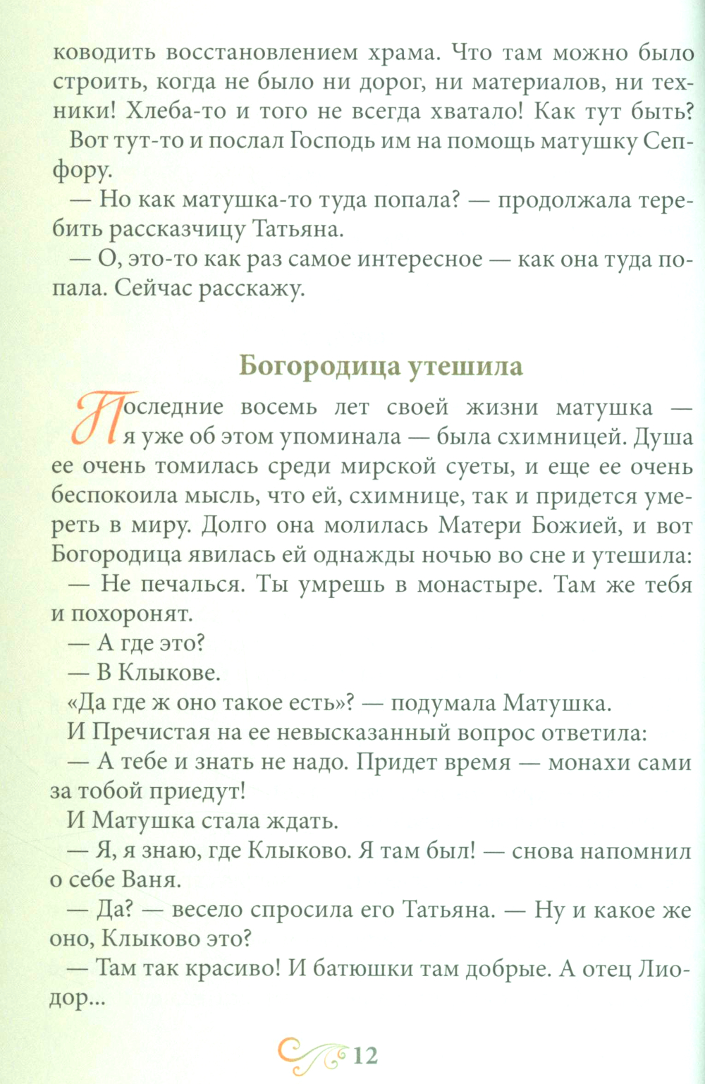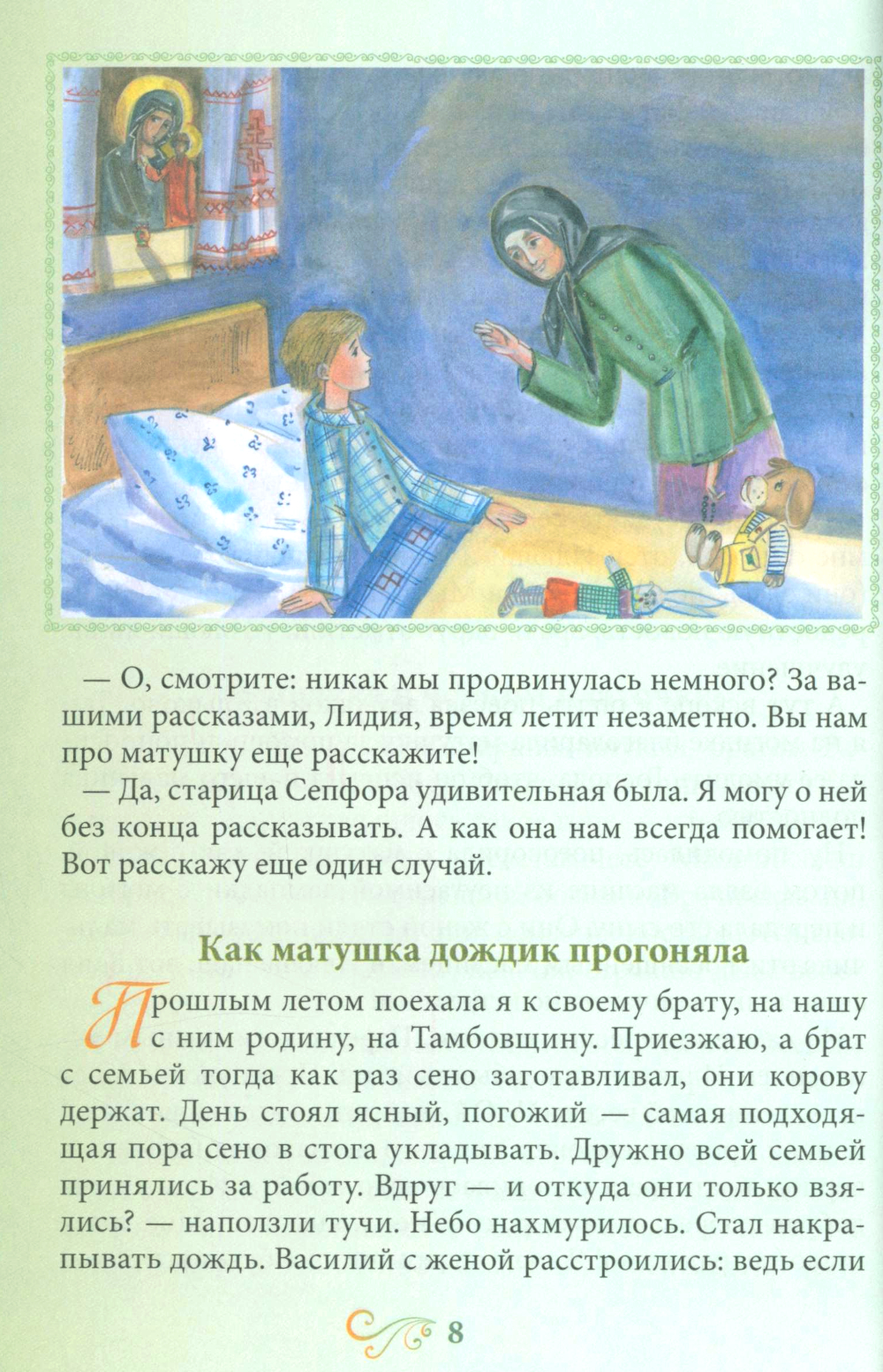 В этом издании представлены следующиее рассказы: - Сепфора - это «птичка» - «Бабушка в чёрном платочке» - Как матушка дождик прогоняла - Клыково - Богородица утешила - Дождалась! - Свято место пусто не бывает - Дары Святого Духа - Дарюша - По плодам - Особые приметы - Петуший эскорт - Улетела птичка Божия в обители горний| Издательство | Духовное преображение |