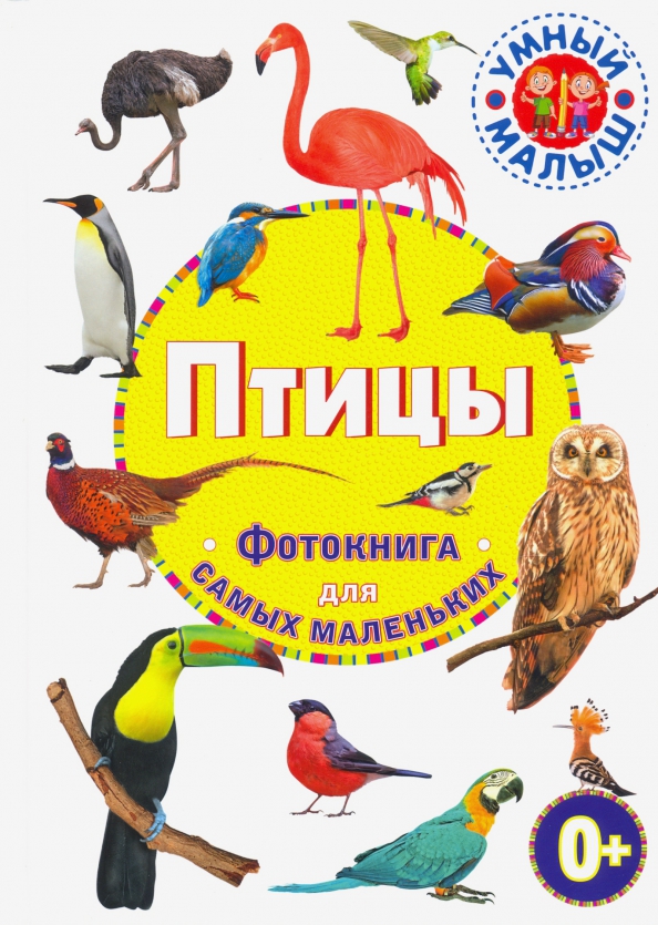 В книге «Птицы» дети смогут узнать и запомнить самых разных птиц, лесных и степных, городских и экзотических: весёлого воробья и грозного беркута, быструю ласточку и неуклюжего пингвина, крохотного колибри и огромного страуса, яркого фламинго и пушистого киви.