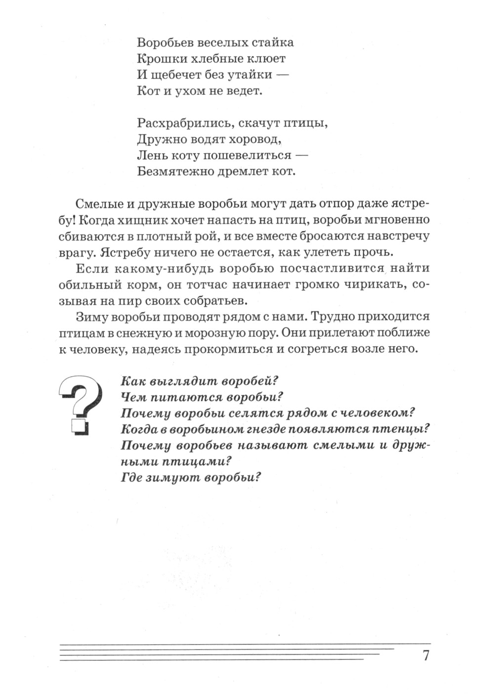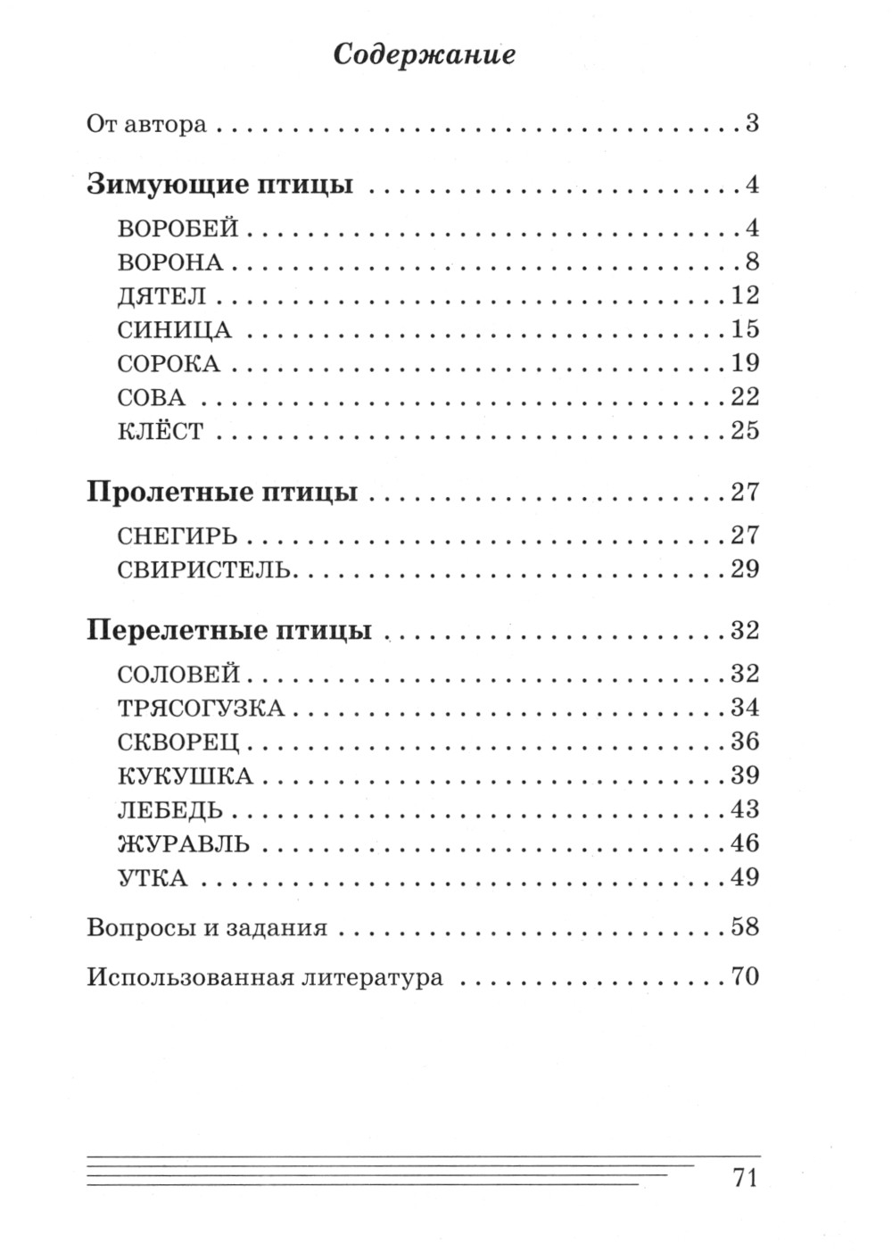 В пособии содержатся увлекательные сведения о жизни птиц. Автор живым образным языком рассказывает о внешнем виде, повадках, условиях обитания пернатых. Путешествие в мир природы сопровождается новыми стихами и загадками автора. Книга способствует развитию речи и логического мышления, активизирует внимание и память детей. Материал пособия может быть использован при коллективной и индивидуальной форме обучения. Адресован воспитателям, гувернерам и родителям.