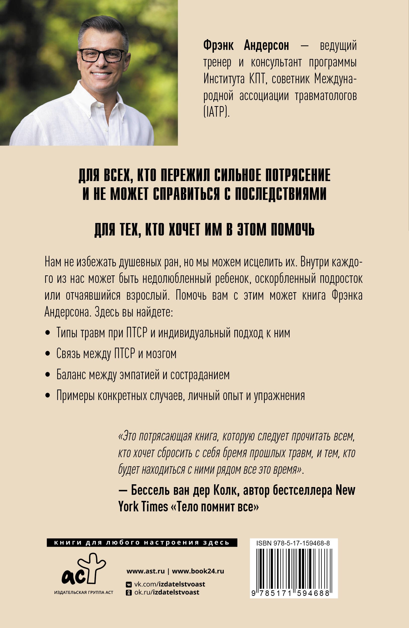 Нам не избежать душевных ран, но мы можем исцелить их. Внутри каждого из нас может прятаться недолюбленный ребенок, оскорбленный подросток или отчаявшийся взрослый. Помочь этим частям может книга Фрэнка Андерсона. Здесь вы найдете: типы травм при ПТСР и индивидуальный подход к ним; связь между ПТСР и мозгом; баланс между эмпатией и состраданием; примеры конкретных случаев, личный опыт и упражнения.