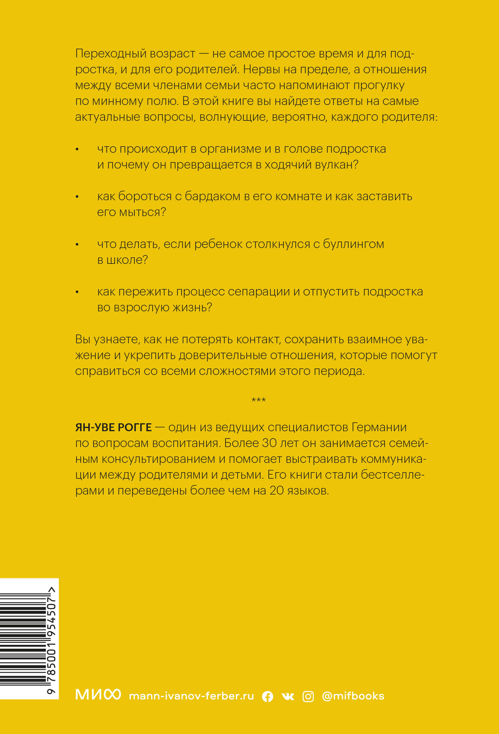 Поможет родителям понять своего ребенка-подростка и наладить отношения с ним. Пубертат - трудное время как для самого ребенка, так и для его родителей. Нервы оголены, но это не повод для войн, действовать нужно с умом. Именно сейчас родителям нельзя сдаваться, ведь воспитание возможно и в подростковый период! Молодым ребятам нужна свобода в проявлении собственной идентичности, а родителям необходимо понимать, что сопротивление со стороны их детей-подростков - попытка заявить о себе и обозначить свои границы. Именно в период полового созревания формируется база дальнейших доверительных отношений между родителями и их взрослеющими детьми. Ян-Уве Рогге, один из ведущих немецких специалистов в области семейного воспитания, чьи работы переведены более чем на 20 языков, описывает, как проходит перестройка детского организма, и объясняет потребности подростков, учит грамотно реагировать на вызывающее поведение и эмоционально поддерживать своего ребенка. В Германии продано 320 тыс. экземпляров этой книги. Для кого эта книга: Для родителей подростков, которые хотят помочь ребенку пережить трудный переходный период, не потерять с ним контакт и даже укрепить отношения. От автора: Когда в середине девяностых годов я начал писать эту книгу, никто не предполагал, что в 2010 году будет продано почти четверть миллиона экземпляров и она станет самым читаемым справочником по вопросам воспитания подростков. Когда книга вышла в свет, я получил множество писем от читателей. Родители, приходившие ко мне на семинары и лекции, благодарили меня за то, что я смог простыми словами осветить такой сложный вопрос, как переходный возраст у подростков. Им стало легче поставить себя на место своего ребенка и эмоционально поддержать вместо того, чтобы ссориться и раздувать конфликт. Хотя книга рассчитана на взрослых, родителей, бабушек и дедушек, педагогов и воспитателей, ее читали и сами подростки. Одно из самых приятных посланий пришло от пятнадцатилетнего Бена: "Классная книга! Я купил ее родителям, чтобы им не так тяжко было со мной. Они прочитали ее, и многое, и правда, стало гораздо лучше. Хотя местами книга вовсе не хороша, потому что вы выдали почти все наши трюки и уловки". Из общения с подростками и их родителями я вынес одно: в большинстве своем молодые ребята вопреки всем неприятностям вырастают уверенными в себе, вступают в эту жизнь самодостаточными и прекрасно с ней справляются. Родители, которые сопровождают выросших детей на пути в самостоятельную жизнь, стараются как следует выполнить свою воспитательную функцию - притом порой в очень непростых условиях. Желаю получить истинное удовольствие от чтения, узнать что-то новое, подойти к вопросу с юмором, самоиронией и улыбнуться вместе с подростком. И надеюсь, что благодаря книге родители найдут в себе силы отпустить ребенка и в то же время поддержать, пока он учится стоять на своих ногах.| Издательство | Манн, Иванов и Фербер |