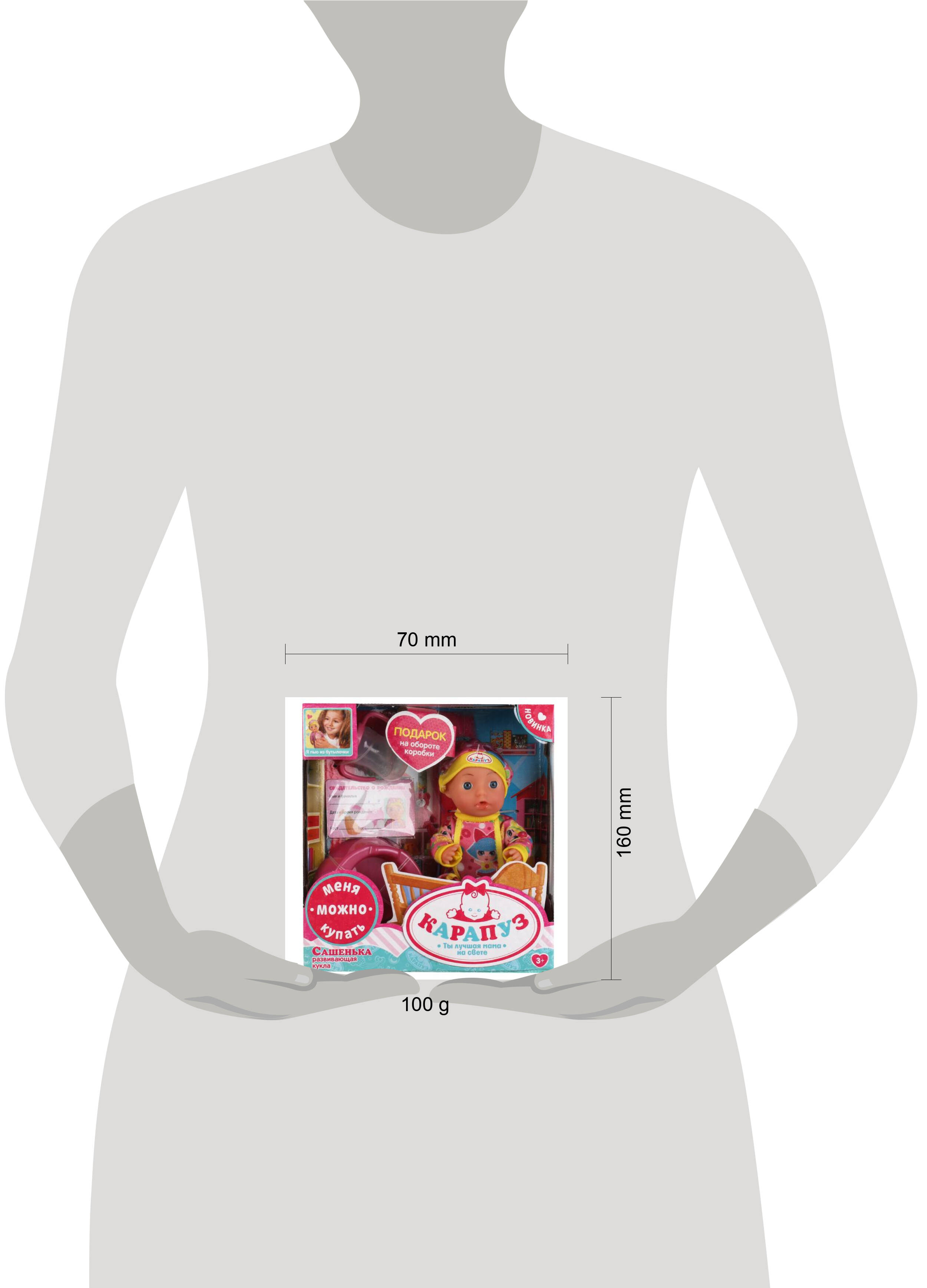 Аннотация: Пупс без озв Сашенька 15 см, пьет,писает, 2 акс, кор, КАРАПУЗ в кор.84шт