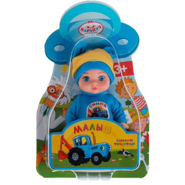 Аннотация: Пупс неозвуч Синий ТРАКТОР 12см, можно купать, на блистере КАРАПУЗ в кор.120шт