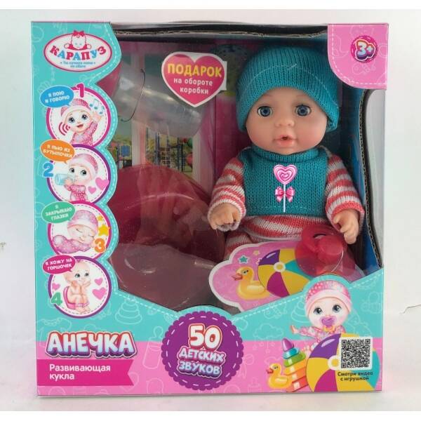 Аннотация: Пупс озвуч 20см, пьет, писает, закр. глазки, 3акс, 50 звуков КАРАПУЗ в кор.24шт