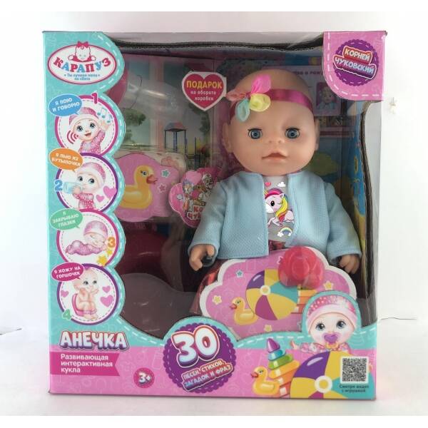 Аннотация: Пупс озвуч Чуковский К. 30см, пьет, писает, закр. глазки, 4акс КАРАПУЗ в кор.12шт