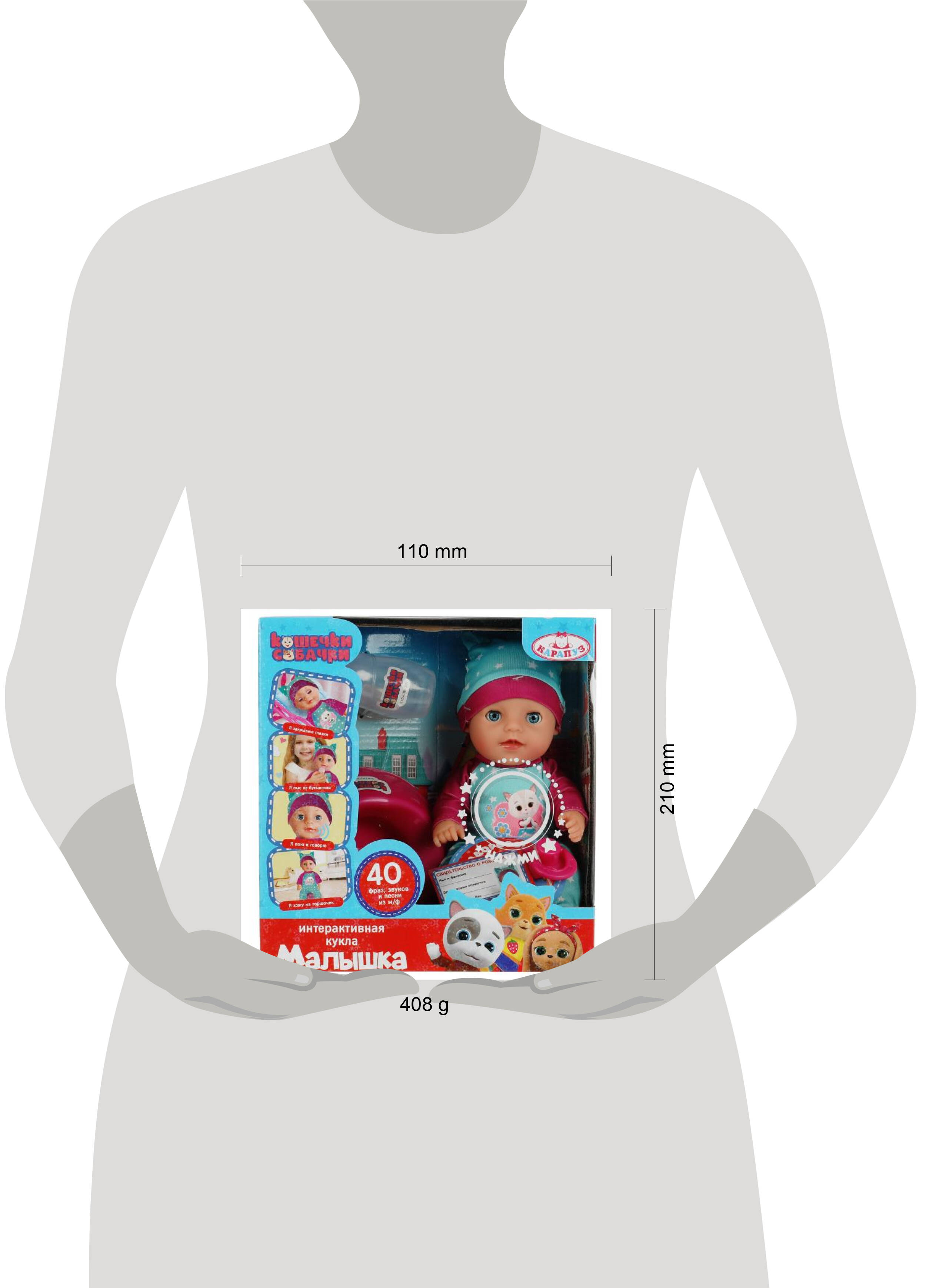Интерактивная кукла "Кошечки-собачки. Малышка" ТМ "Карапуз" станет прекрасным подарком для вашей принцессы: - воспроизводит 40 фраз и песен из м/Ф - пьёт из бутылочки - ходит на горшок В комплекте: - горшок - бутылочка - пустышка Этот милый пупс, с детально проработанным личиком, обязательно понравится вашей малышке. Куколка одета в яркий наряд с изображением персонажа мультсериала и милую шапочку. Одежда легко надевается и снимается. С такой куклой девочка может играть в самые разные игры, гулять с ней, петь песни, кормить, переодевать, рассказывать сказки и укладывать спать. Игра с интерактивным пупсом ТМ "Карапуз" учит ребёнка заботиться об окружающих, быть ответственным и внимательным, а также развивает: - воображение - память - внимание - звуковое восприятие и музыкальный слух - социально-коммуникативные навыки Рост куклы: 20 см. Материал: пластмасса + текстиль. Работает от 3-х батареек типа LR44 (в комплекте). Рекомендовано детям от 3-х лет.| Издательство | С-Маркет ООО |