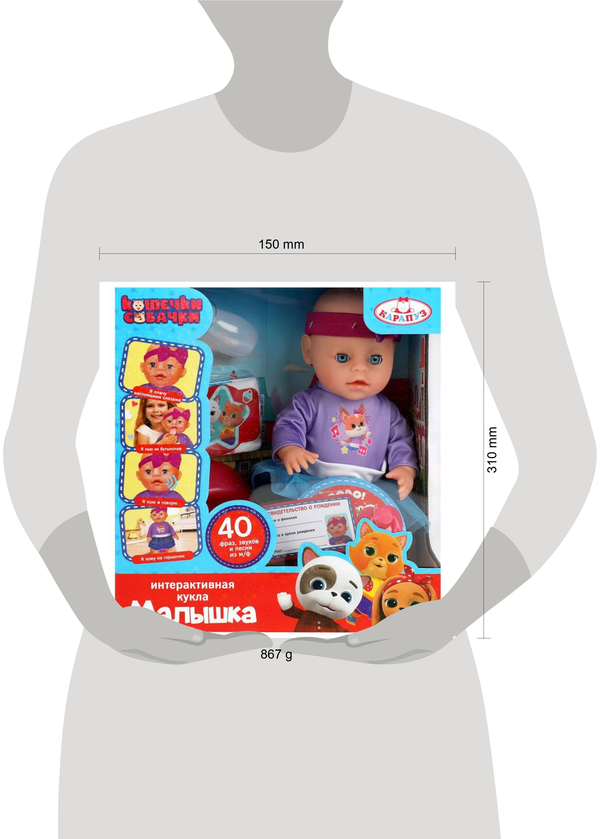 Аннотация: Пупс озвуч КОШЕЧКИ - СОБАЧКИ 30см, пьет, пис, плачет, 40 фраз и песен, 4 акс КАРАПУЗ в кор.12шт