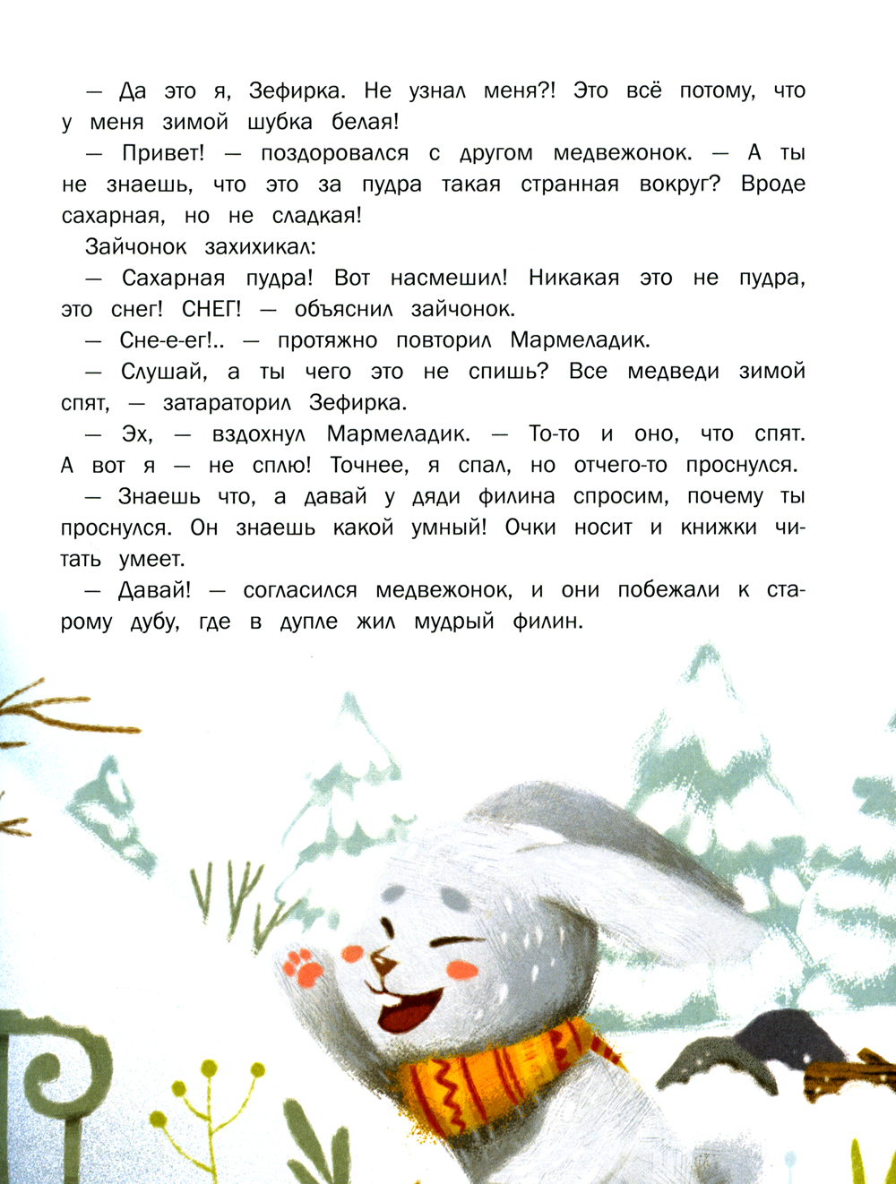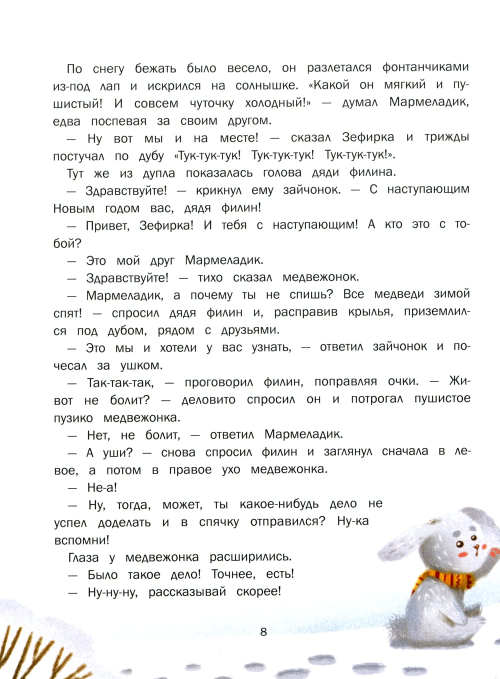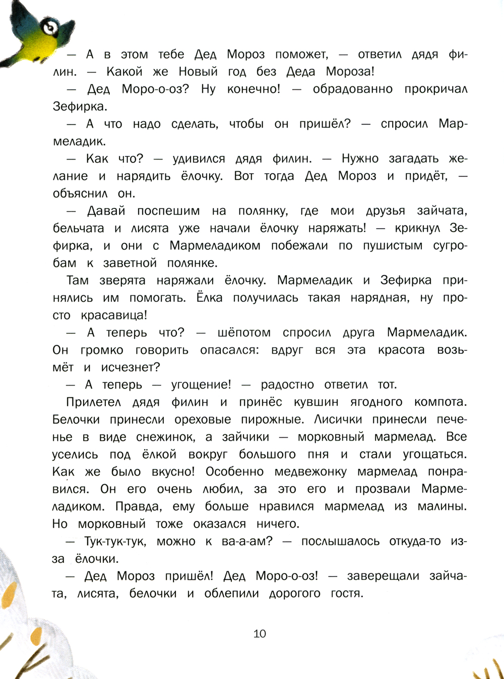 В преддверии Нового года все ждут чудес и волшебства. И лесные зверюшки не исключение. А если чего-то очень ждать, то это обязательно сбудется! В наших пушистых снежных сказках медвежонок проснется зимой и первый раз в жизни встретит Новый год. Барсучонок и его друзья с помощью волшебного мешочка смогут нарядить елочку, звездочки на небе подготовят новогодний концерт, бельчата помогут маленькой тучке, у которой никак не получался снег, волшебница-зима научит зайца играть в прятки и все зверюшки на поляне станцуют танец дружбы!| Издательство | Стрекоза |