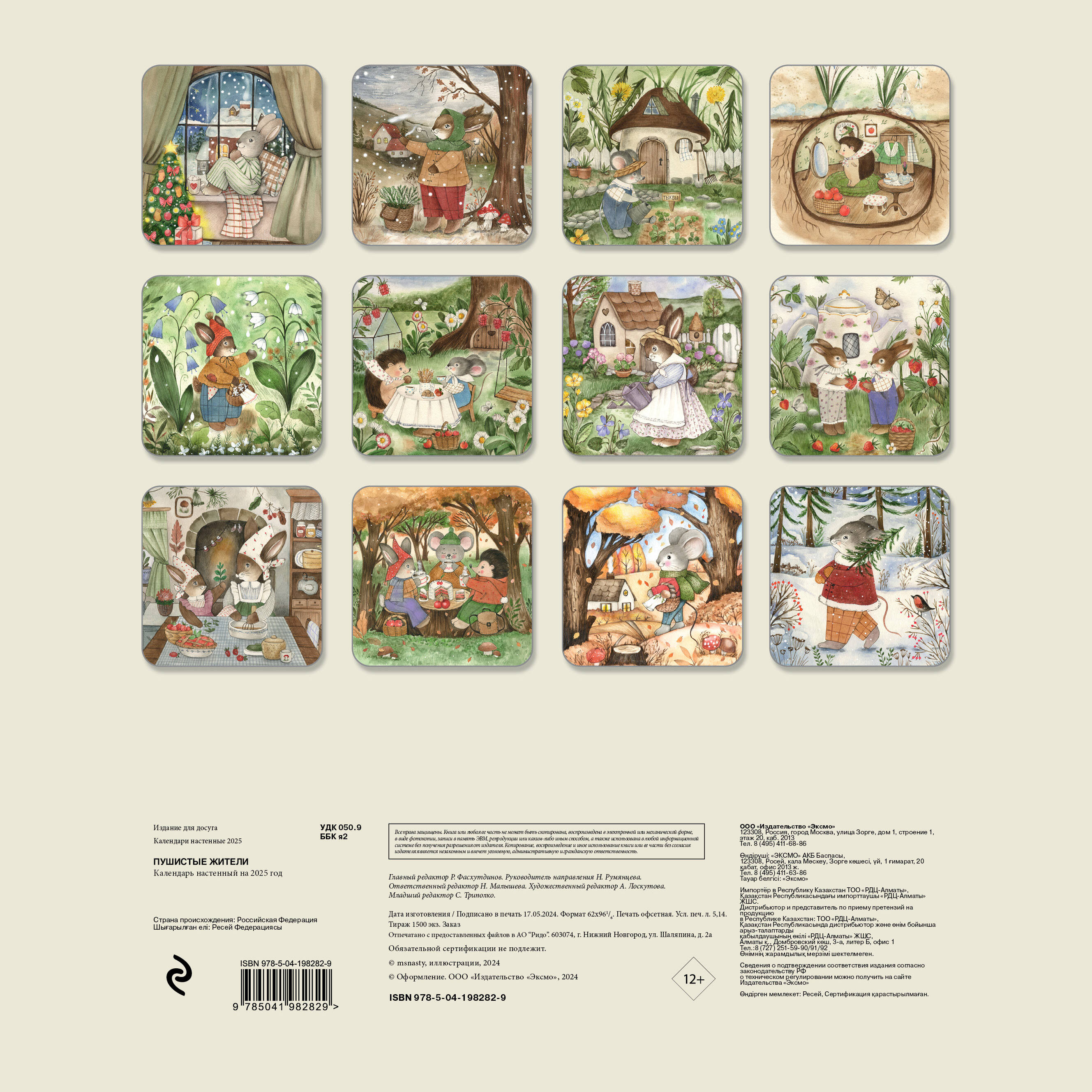 О серии: Наши настенные календари отличаются высоким качеством исполнения! Тщательно подобранные иллюстрации, напечатанные на глянцевой бумаге высочайшего качества, станут настоящим украшением дома, а в календарной сетке найдется место для ваших планов: большие клетки позволят делать записи и организовать свой год! В календаре также отмечены все государственные праздники. О календаре: Пушистые и милые, эти лесные жители играют, мечтают и проводят свое время совсем как мы. Эти очаровательные зверята художницы Анастасии (msnastyi) напоминают нам о сказках из далекого детства, о душевной простоте и вере в чудо! Календарь поможет грамотно спланировать свой день, неделю, месяц и год, а иллюстрации органично дополнят любой интерьер. Для кого: Для всех любителей сказочных иллюстраций животных. Технические параметры: - Тип календаря - настенный перекидной. - Год - 2025. - Календарная сетка - с разбивкой по месяцам. - Вид скрепления - скрепка. - Ширина - 30 см. - Высота - 30 см. - Внутренний блок - мелованная бумага 115 г/м2. - Подложка - плотный гофрокартон для поддержания формы. - Индивидуальная упаковка в плотный целлофановый пакет.| Издательство | ООО "Издательство "Эксмо" |