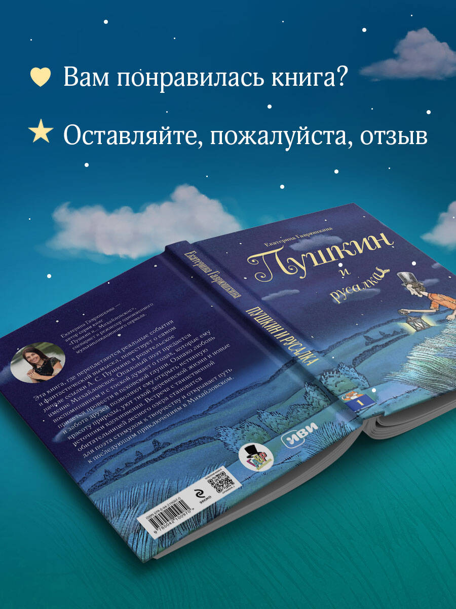 Чуть что, так сразу Пушкин! Коллекционная серия книг по мотивам мультфильма «Пушкин и... Михайловское». Поэт отбывает ссылку и находит новые творческие силы с помощью верных друзей Пса, Кота и Мышки и заботливой няни Арины Родионовны. Идеальное чтение для детей и взрослых о культовой фигуре русской литературы. Первая книга, где переплетаются реальные события и фантастический вымысел, повествует о самом начале ссылки Александра Сергеевича Пушкина в родительское имение Михайловское. Опальный поэт предается воспоминаниям и с тоской думает о годах, которые ему придется провести в псковской глуши. Однако любовь и забота друзей позволяют ему открыть истинную красоту природы, уют тихой деревенской жизни и новые источники вдохновения. Встреча с таинственной обитательницей лесного озера становится для поэта стимулом к творчеству и открывает путь к последующим приключениям в Михайловском. Автор серии книг «Пушкин и... Михайловское» - Екатерина Гаврюшкина, российский сценарист и режиссер одноименного мультипликационного сериала. Читайте в первом сезоне «Лето»: 1. «Пушкин и русалка» 2. «Пушкин и чижик» 3. «Пушкин и соседи» 4. «Пушкин и опасный визит» 5. «Пушкин и аппетит» 6. «Пушкин и Алина» 7. «Пушкин и леший» 8. «Пушкин и письмо» 9. «Пушкин и цыгане» 10. «Пушкин и волшебный фонарь» 11. «Пушкин и зеркало» 12. «Пушкин и домовой» 13. «Пушкин и сенокос»| Издательство | ООО "Издательство "Эксмо" |