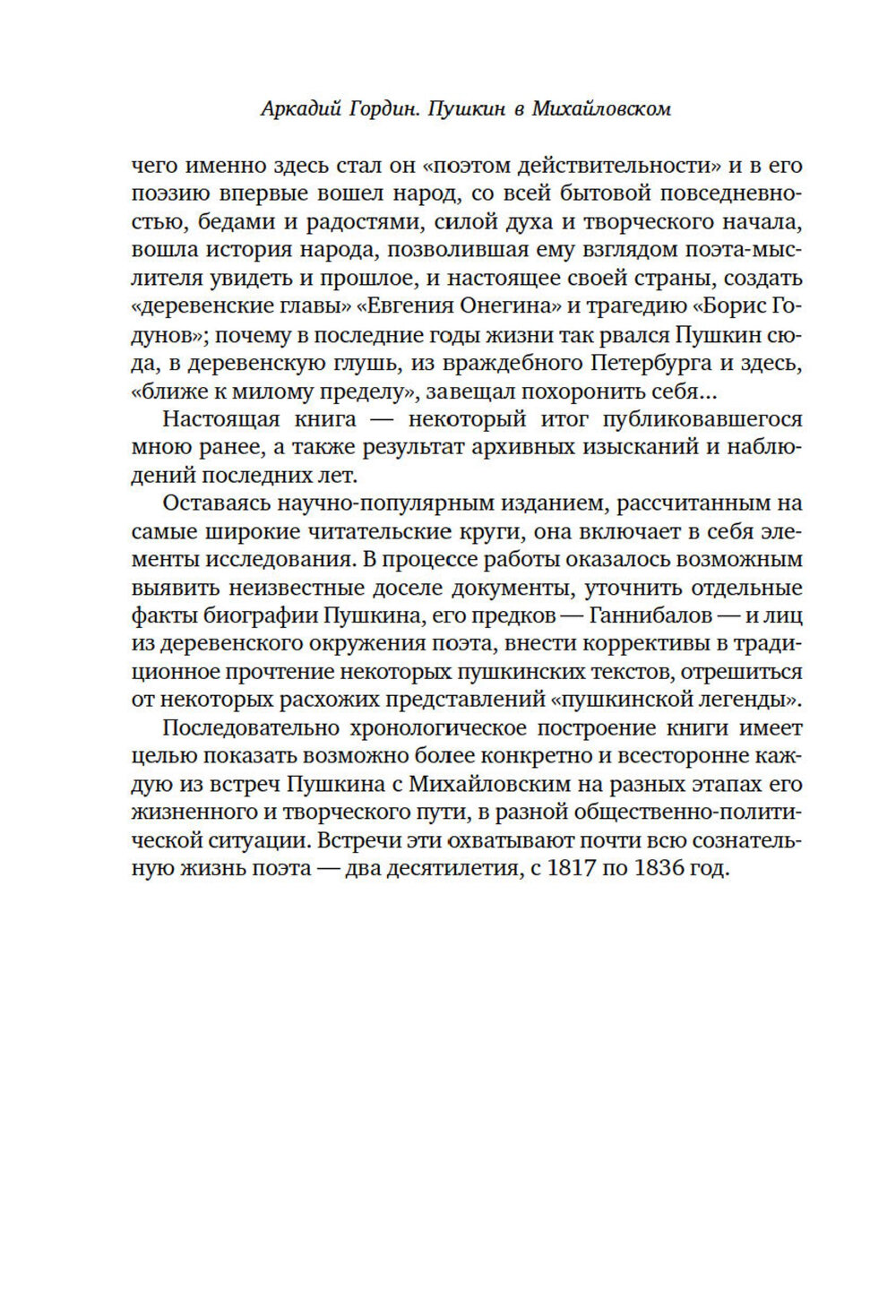 Имение Михайловское, вотчину Абрама Ганнибала, «арапа Петра Великого», А. С. Пушкин впервые посетил в 1817 году, в последний раз - в 1836 году; встречи поэта с Михайловским охватывают два десятилетия: он приезжал сюда в разные периоды своей жизни. Здесь было создано около ста произведений, в том числе трагедия «Борис Годунов», главы романа «Евгений Онегин», поэма «Граф Нулин», стихотворения «Деревня», «Пророк», «Я помню чудное мгновенье...», «Вновь я посетил...». Сюда поэт стремился в самые тяжкие минуты жизни и здесь, у Святогорского монастыря, завещал себя похоронить. «Пушкин в Михайловском» - главный труд известного пушкиниста Аркадия Моисеевича Гордина (1913-1997). Еще в 1939-1940 годах А. М. Гордину довелось принять непосредственное участие в создании первой научно обоснованной экспозиции в усадьбе Михайловское, в 1945-1949 годах он был заместителем директора Пушкинского заповедника по научной части, а в 1957-1963 годах - заместителем директора по научной части Всесоюзного музея А. С. Пушкина. Опираясь на обширный фактический материал, в том числе на архивные источники, автор увлекательно рассказывает о значении Михайловского в судьбе поэта. Книга А. М. Гордина вышла в свет в 1989 году и с этого времени уже не раз переиздавалась, до сих пор оставаясь классикой пушкинистики.| Издательство | Азбука |