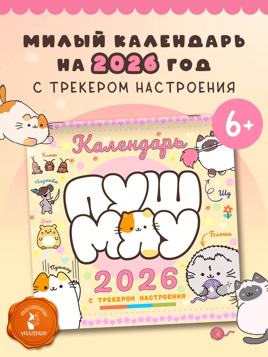 Этот календарь - ваш пушистый антистресс на 2026 год! Котик-мотиватор Пушмяу будет следить, чтобы вы не грустили, не забывали важное и начинали каждый день с улыбки! Внутри вас ждёт 12 веселых месяцев с отмеченными праздниками, трекер настроения - отмечайте, как прошел день: от "Мурр-шик" до "Хочу спать и смотреть на рыбку…", а также место для записей - фиксируйте важное, глупое или просто милое - Пушмяу одобрит всё! Календарь не только украсит стену, но и гарантированно притянет хорошее настроение (и, возможно, реальных котиков). Год с Пушмяу - хороший год!| Издательство | Издательство "АСТ" |