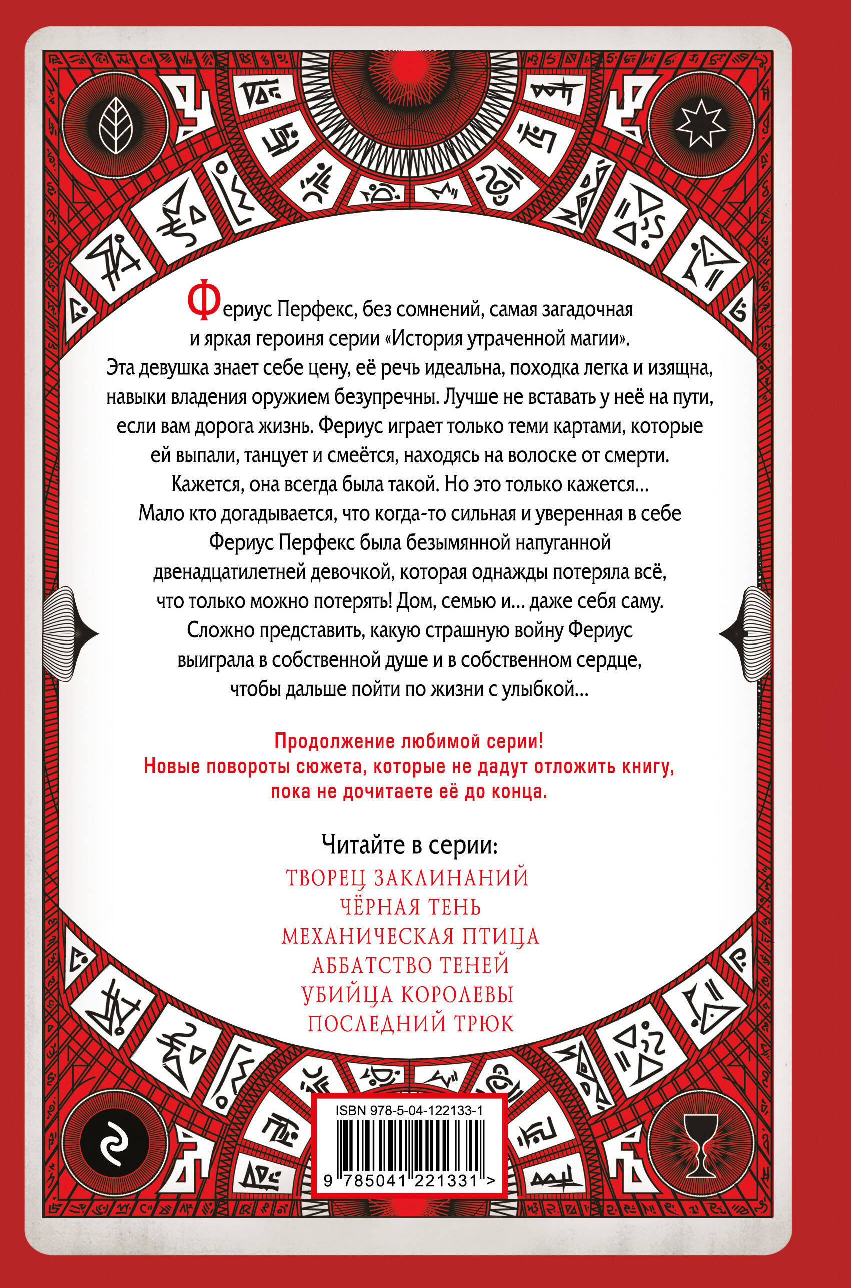 Фериус Перфекс без сомнений самая загадочная и яркая героиня серии «История утраченной магии». Эта девушка знает себе цену, её речь идеальна, походка легка и изящна, навыки владения оружием безупречны. Лучше не вставать у неё на пути, если вам дорога жизнь. Фериус играет только теми картами, которые ей выпали, танцует и смеётся, находясь на волоске от смерти. Кажется, она всегда была такой. Но это только кажется… Мало кто догадывается, что когда-то сильная и уверенная в себе Фериус Перфекс была безымянной напуганной двенадцатилетней девочкой, которая однажды потеряла всё, что только можно потерять! Дом, семью и… даже себя саму. Сложно представить, какую страшную войну Фериус выиграла в собственной душе и в собственном сердце, чтобы дальше пойти по жизни с улыбкой… Продолжение любимой серии! Новые повороты сюжета, которые не дадут отложить книгу, пока не дочитаете до конца.| Издательство | ООО "Издательство "Эксмо" |