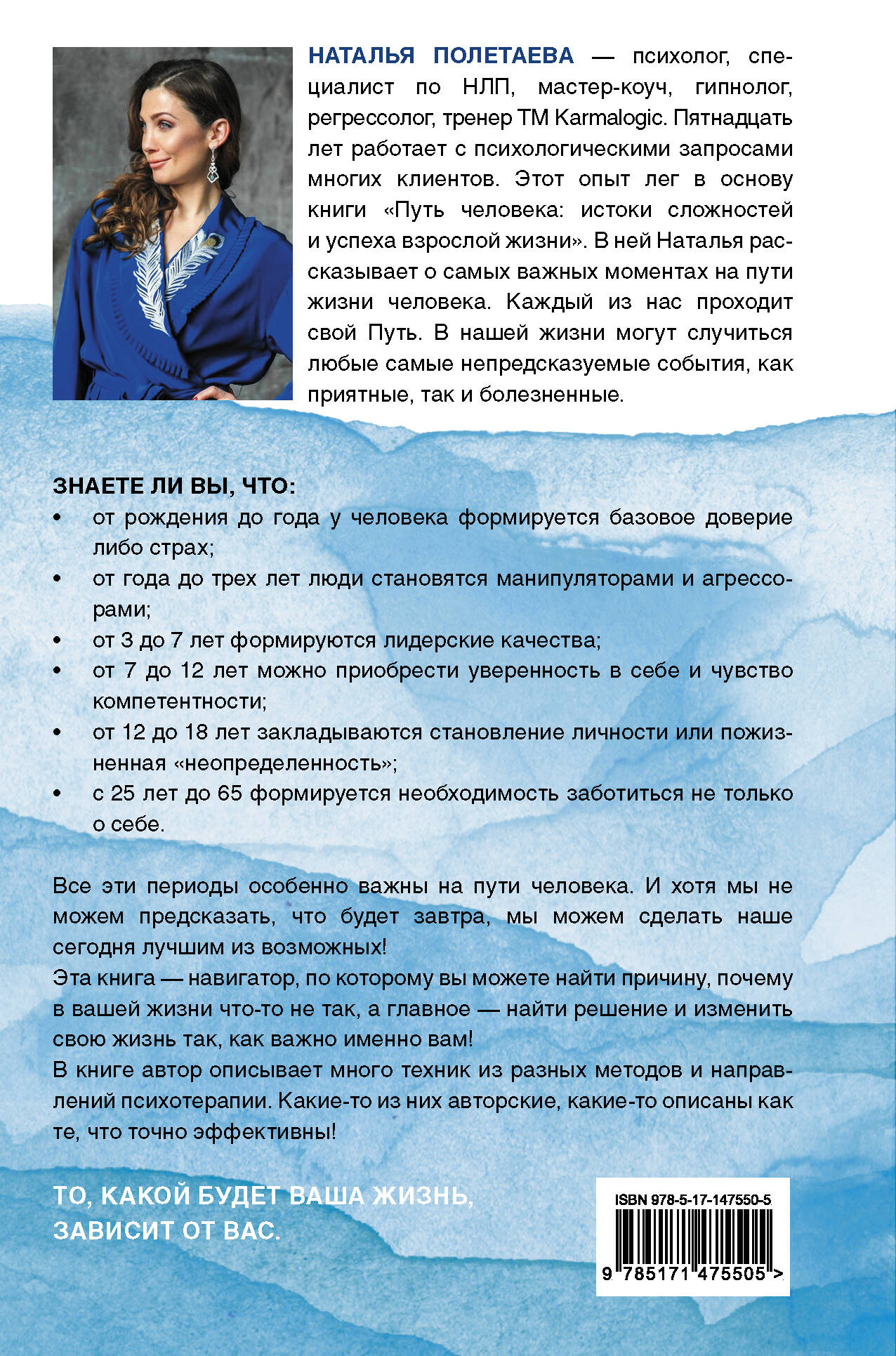 «Путь человека: истоки сложностей и успеха взрослой жизни» станет прекрасным путеводителем в поиске решений для эффективного изменения своей жизни. Книга психолога, специалиста по НЛП, гипнолога и регрессолога Натальи Полетаевой содержит техники, методы и ряд направлений психотерапии, которые помогут выявить причины проблем вашей жизни и исправить еек лучшему. Издание стильно оформлено и имеет удобный классический формат!| Издательство | АСТ |