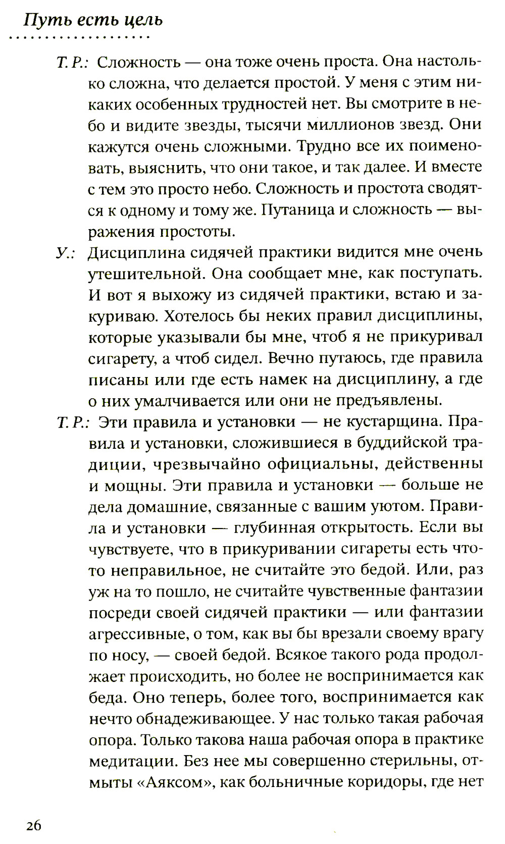 Руководство по буддийской медитации «Путь есть цель» может оказаться для вас идеальной поддержкой в самом начале пути самодисциплины и освоения вашего ума, но даже для бывалых практикующих наставления Чогьяма Трунгпы неизменно оказываются точными и полезными. «Воспитание ума» - компактный и доступный комментарий Чогьяма Трунгпы к лоджонгу, испытанной веками практике воспитания ума. ЧОГЬЯМ ТРУНГПА РИНПОЧЕ (1939-1987) - тибетский буддийский мастер, учитель, художник и поэт, один из ключевых проводников Дхармы на Западе.| Издательство | Изд. Ганга |