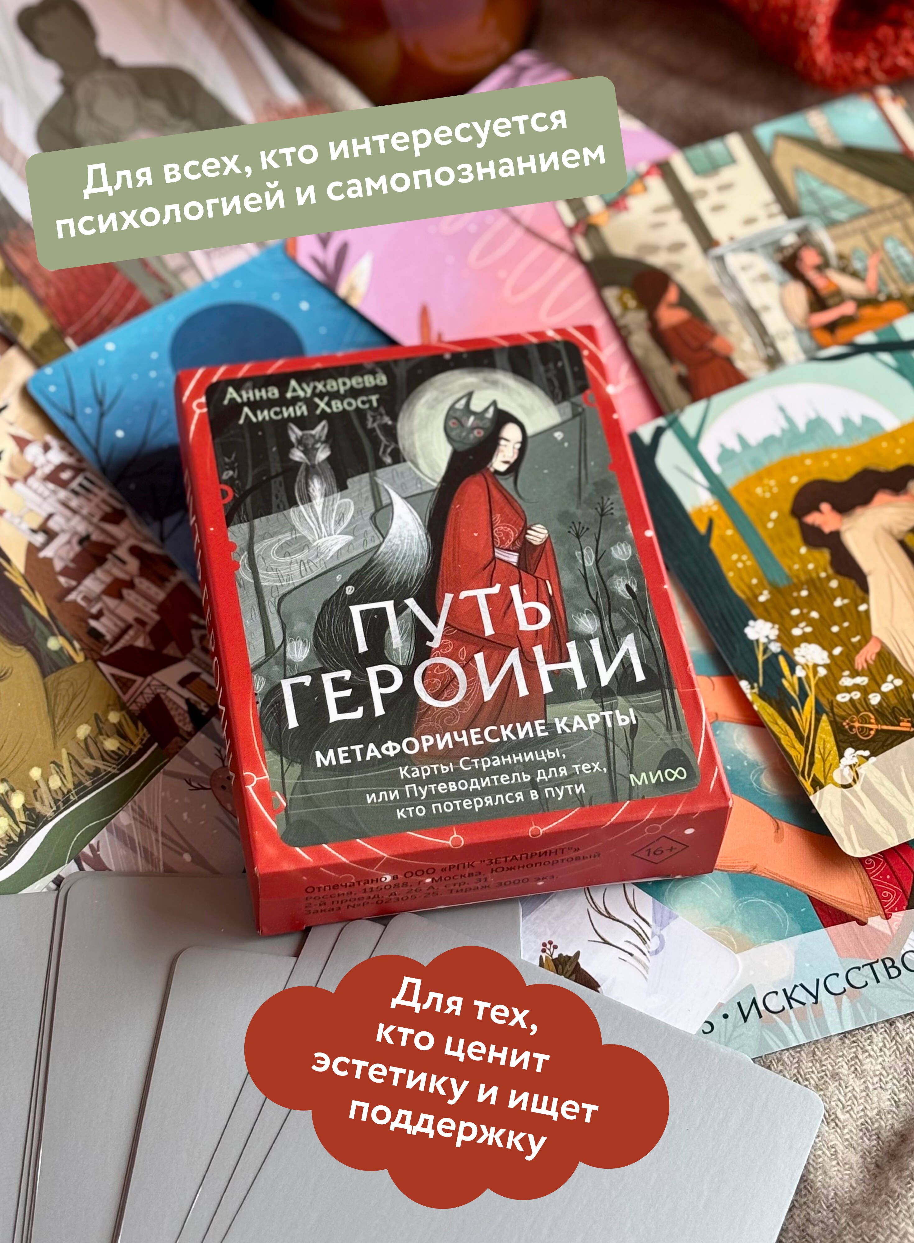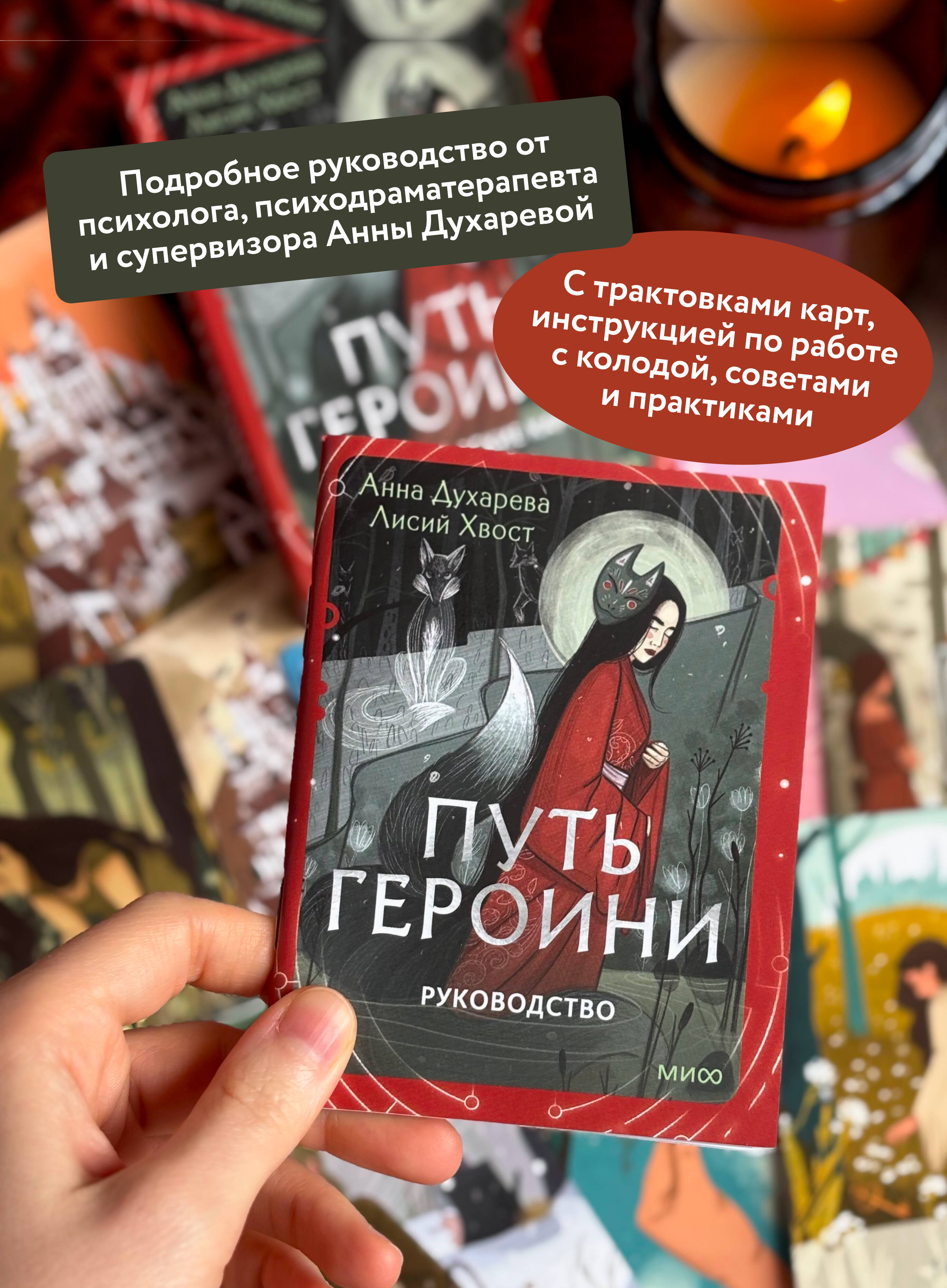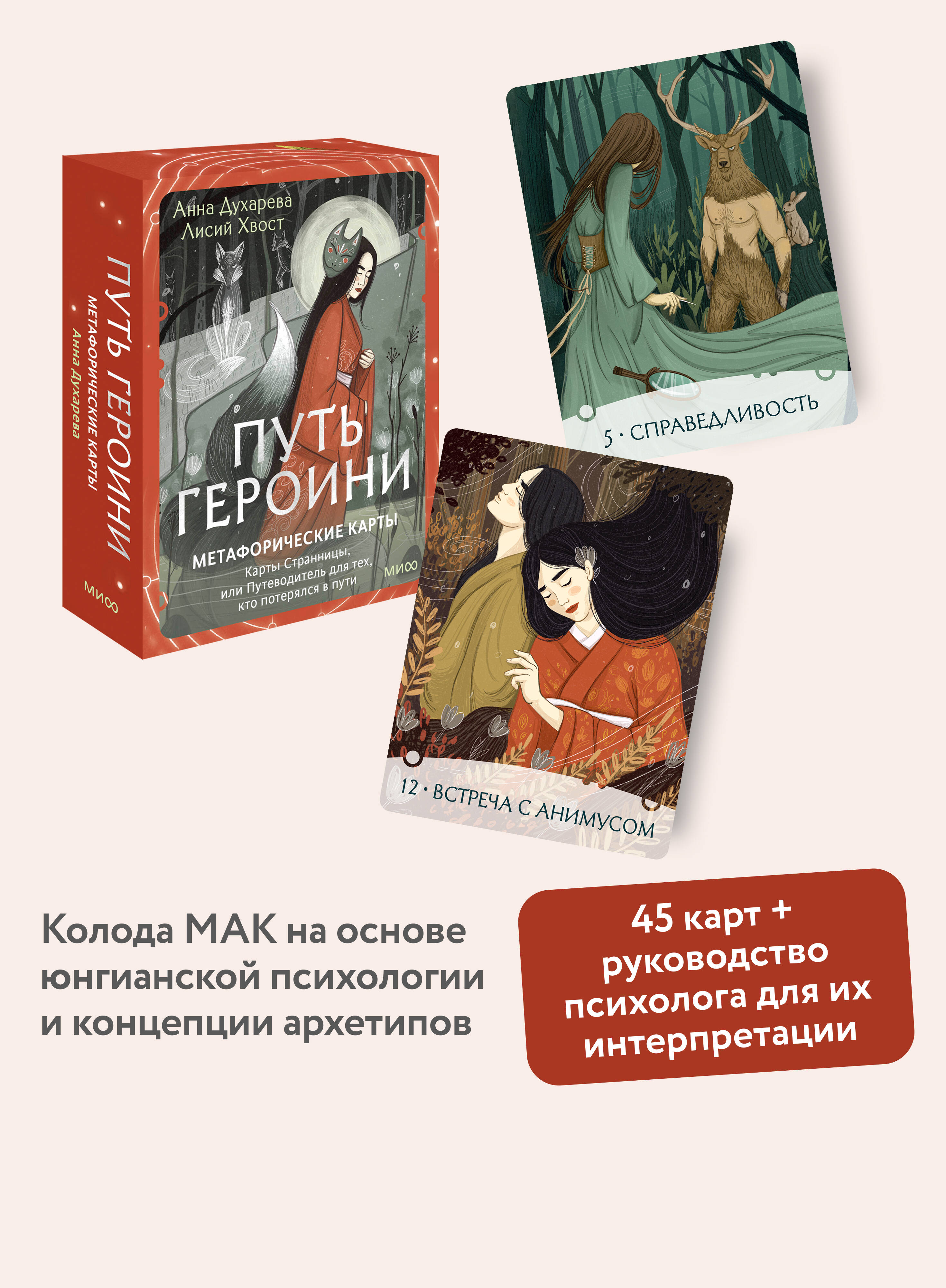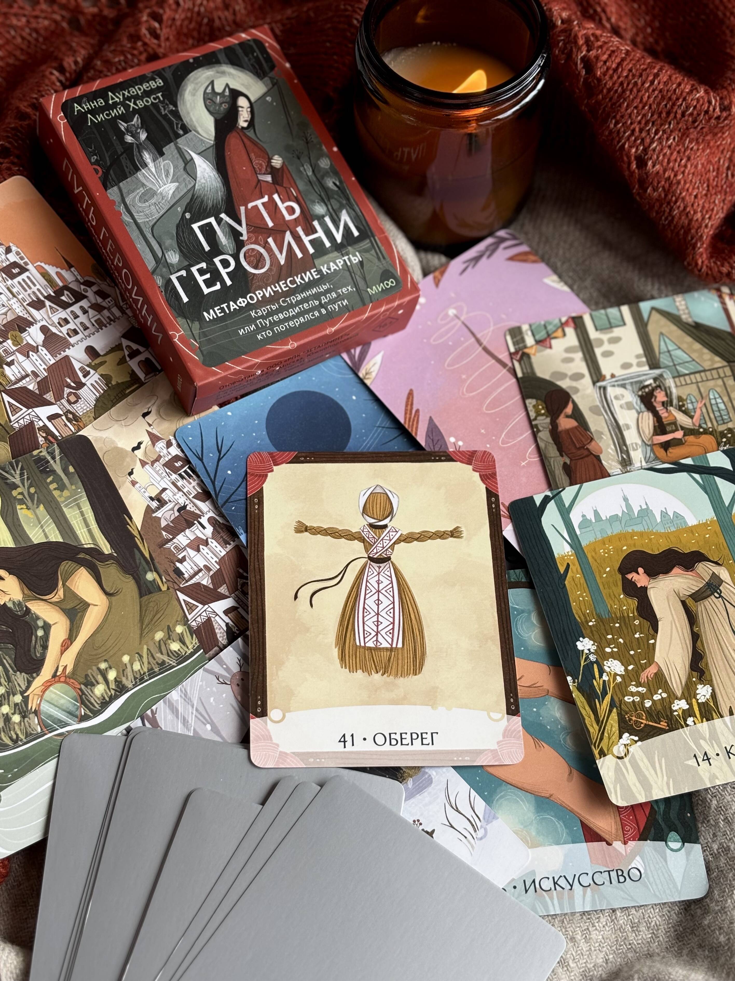 Авторская колода метафорических карт на основе юнгианской психологии и концепции архетипов. Руководство психолога и супервизора Анны Духаревой и миры художницы Лисий Хвост помогут вам узнать себя, вернуть спокойствие или обрести вдохновение. Потому что вы и есть - Героиня.| Издательство | МИФ ООО |