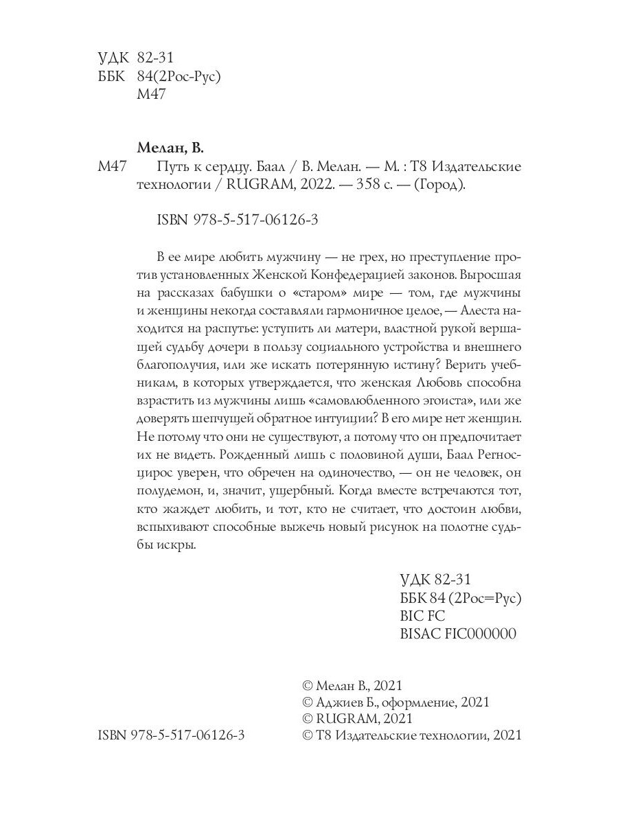 В ее мире любить мужчину - не грех, но преступление против установленных Женской Конфедерацией законов. Выросшая на рассказах бабушки о «старом» мире - том, где мужчины и женщины некогда составляли гармоничное целое, - Алеста находится на распутье: уступить ли матери, властной рукой вершащей судьбу дочери в пользу социального устройства и внешнего благополучия, или же искать потерянную истину? Верить учебникам, в которых утверждается, что женская Любовь способна взрастить из мужчины лишь «самовлюбленного эгоиста», или же доверять шепчущей обратное интуиции? В его мире нет женщин. Не потому что они не существуют, а потому что он предпочитает их не видеть. Рожденный лишь с половиной души, Баал Регносцирос уверен, что обречен на одиночество, - он не человек, он полудемон, и, значит, ущербный. Когда вместе встречаются тот, кто жаждет любить, и тот, кто не считает, что достоин любви, вспыхивают способные выжечь новый рисунок на полотне судьбы искры.| Издательство | Т8 RUGRAM |