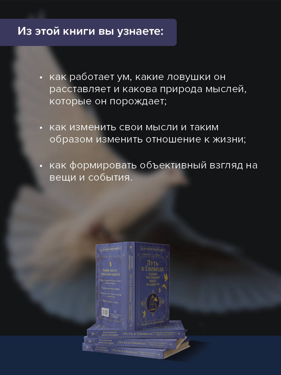 Человек - это бесспорный хозяин своей судьбы, способный изменить ее одной только силой мысли. Даже самые незначительные идеи и воспоминания оказывают воздействие на нашу жизнь и формируют судьбу. Открыв для себя новые пути размышления, человек находит себя в окружении новой реальности. Владимир Жикаренцев - известный российский философ, писатель и психолог, автор популярных книг и семинаров. Тираж его книг превышает пять миллионов экземпляров! Книга "Путь к свободе" уже выдержала восемь переизданий и стала классикой. Многие авторы пишут о том, что мысли оказывают воздействие на нашу жизнь и, если научиться управлять ими, откроется новая реальность. Но как это сделать? Эта книга - практика. Упражнения, которые вы найдете здесь, научат вас работать с мыслями и откроют настоящий путь к свободе. У вас есть реальная возможность овладеть психической энергией, выстроить гармоничные отношения с людьми и просто стать здоровым и счастливым человеком. Книга имеет практическую направленность и предназначена для тех, кто хочет понять, почему у них в жизни происходят те или иные события, и научиться влиять на свою жизнь.| Издательство | Издательство "АСТ" |
