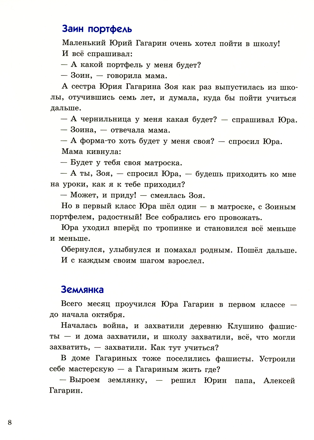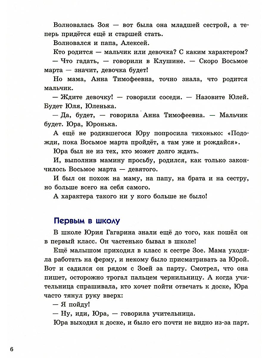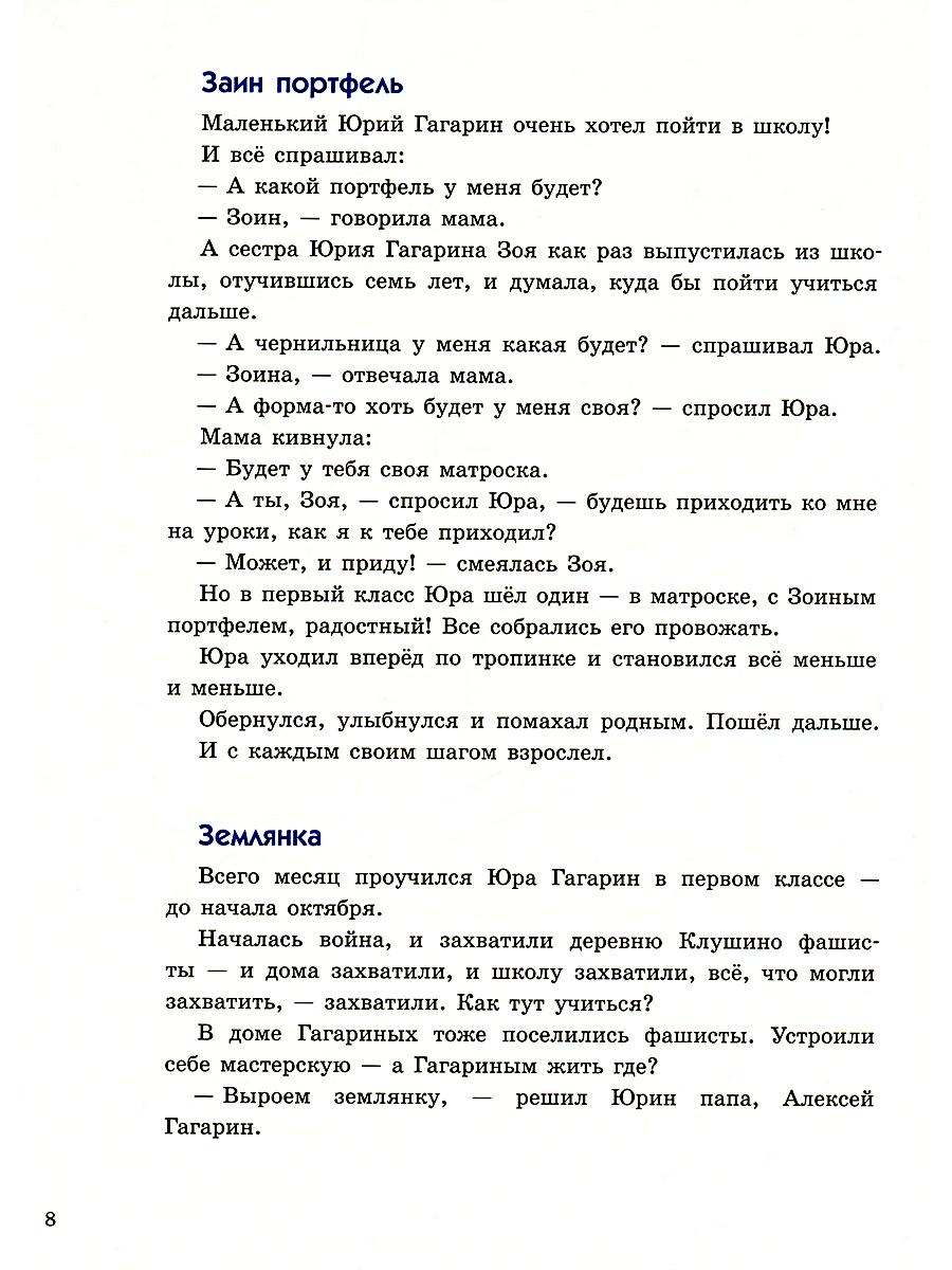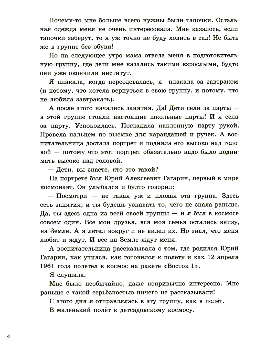Книга представляет собой сборник художественных биографий известных российских космонавтов, написанных современными детскими писателями специально для детей. Самыми первыми отправились в путешествие к звёздам… мечтатели. А космонавты? А космонавты вначале тоже были мечтателями. И маленький Юра Гагарин, и Паша Попович, и Володя Джанибеков, и Юра Усачёв, и Саша Лазуткин, и Серёжа Рязанский - все они много-много раз отправлялись в космос на крыльях мечты. Книга повествует о детстве самых знаменитых космонавтов, о том, как зарождалась мечта дотянуться до звезд и конечно о том, какой путь пришлось проделать каждому, чтобы эта мечта стала реальностью. Здесь читатель найдёт множество забавных и трогательных фактов о каждом из героев. Наверное, мало кто знает, что Юрий Гагарин любил очень громко играть на трубе, а Павел Попович летал и пел. Кроме того, книга познакомит с космическим бытом, расскажет о работе на международной космической станции и о том, какие необычные задачи и поручения порой выполняют космонавты. К примеру, Сергею Рязанскому однажды поручили сфотографировать Эльбрус. Благодаря сделанной фотографии удалось найти и спасти пропавших туристов. В книге много иллюстраций, все биографии написаны живым и проникновенным языком. По сути это книга об отечественных мирных героях на кого можно ровняться и с кого брать пример трудолюбия и упорства, веры в свою мечту. Ну и, конечно это книга о мире во всем мире и о том, что в космосе нет границ и все мы: русские, американцы, итальянцы, китайцы на самом деле земляне.