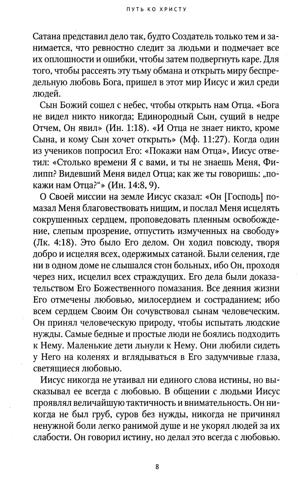 На страницах этой книги просто и ясно показан путь, ведущий к Богу. Взор читателя направлен на Иисуса Христа - Он, и только Он может удовлетворить нужды ищущей души. Вдохновенный автор помогает неуверенному и сомневающемуся увидеть путь, ведущий к миру и жизни с Богом. Следуя предложенным здесь советам, каждый, ищущий истину и стремящийся к совершенству характера, сможет шаг за шагом идти по пути христианской жизни к полноте успеха, который является результатом полного признания над собой власти сотворившего и искупившего нас Господа. Для широкого круга читателей.| Издательство | Источник жизни |