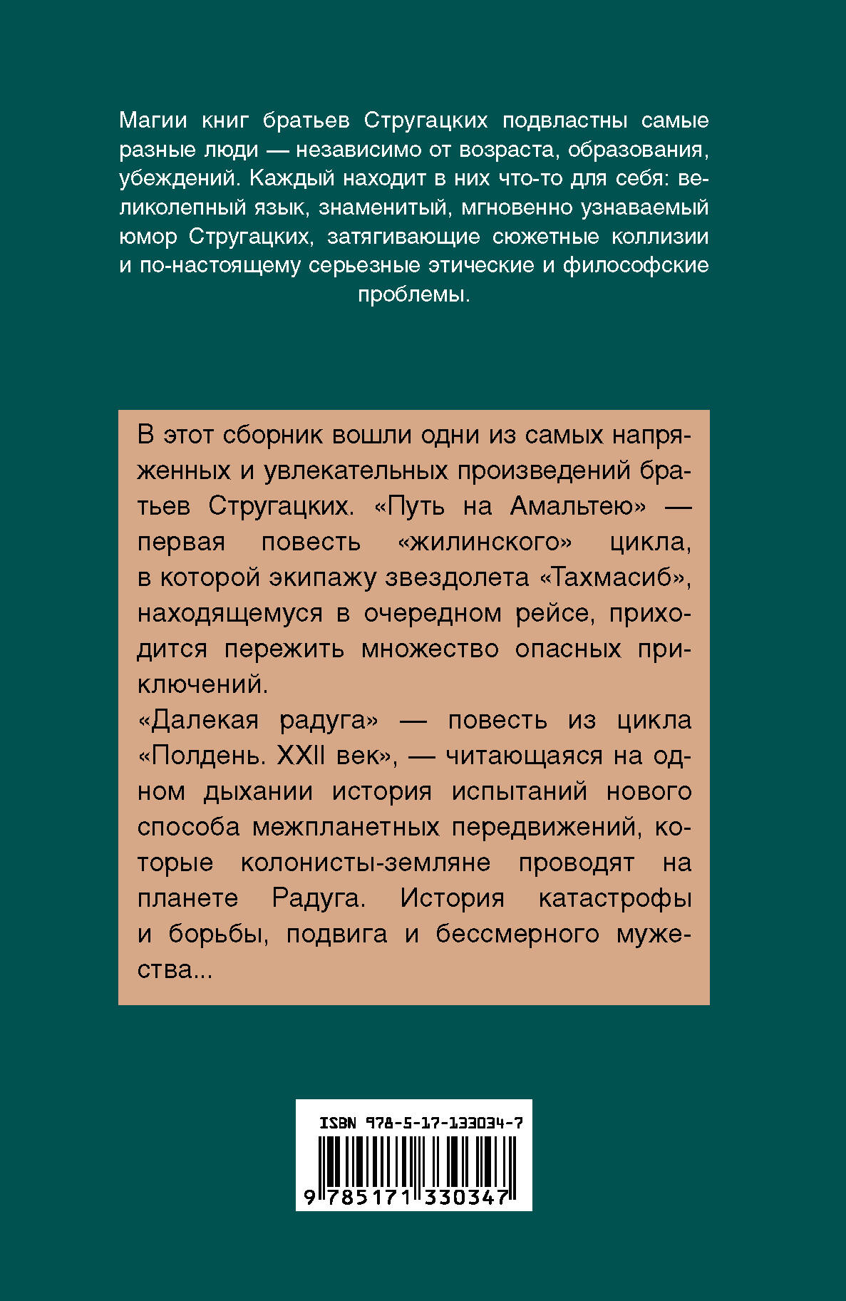 В этот сборник вошли одни из самых напряженных и увлекательных произведений братьев Стругацких. "Путь на Амальтею" - первая повесть "жилинского" цикла, в которой экипажу звездолета "Тахмасиб", находящемуся в очередном рейсе, приходится пережить множество опасных приключений. "Далекая Радуга" - повесть из цикла "Полдень. ХХII век" - читающаяся на одном дыхании история испытаний нового способа межпланетных передвижений, которые колонисты-земляне проводят на планете Радуга. История катастрофы и борьбы, подвига и бессмертного мужества...| Издательство | ИЗДАТЕЛЬСТВО "АСТ" |