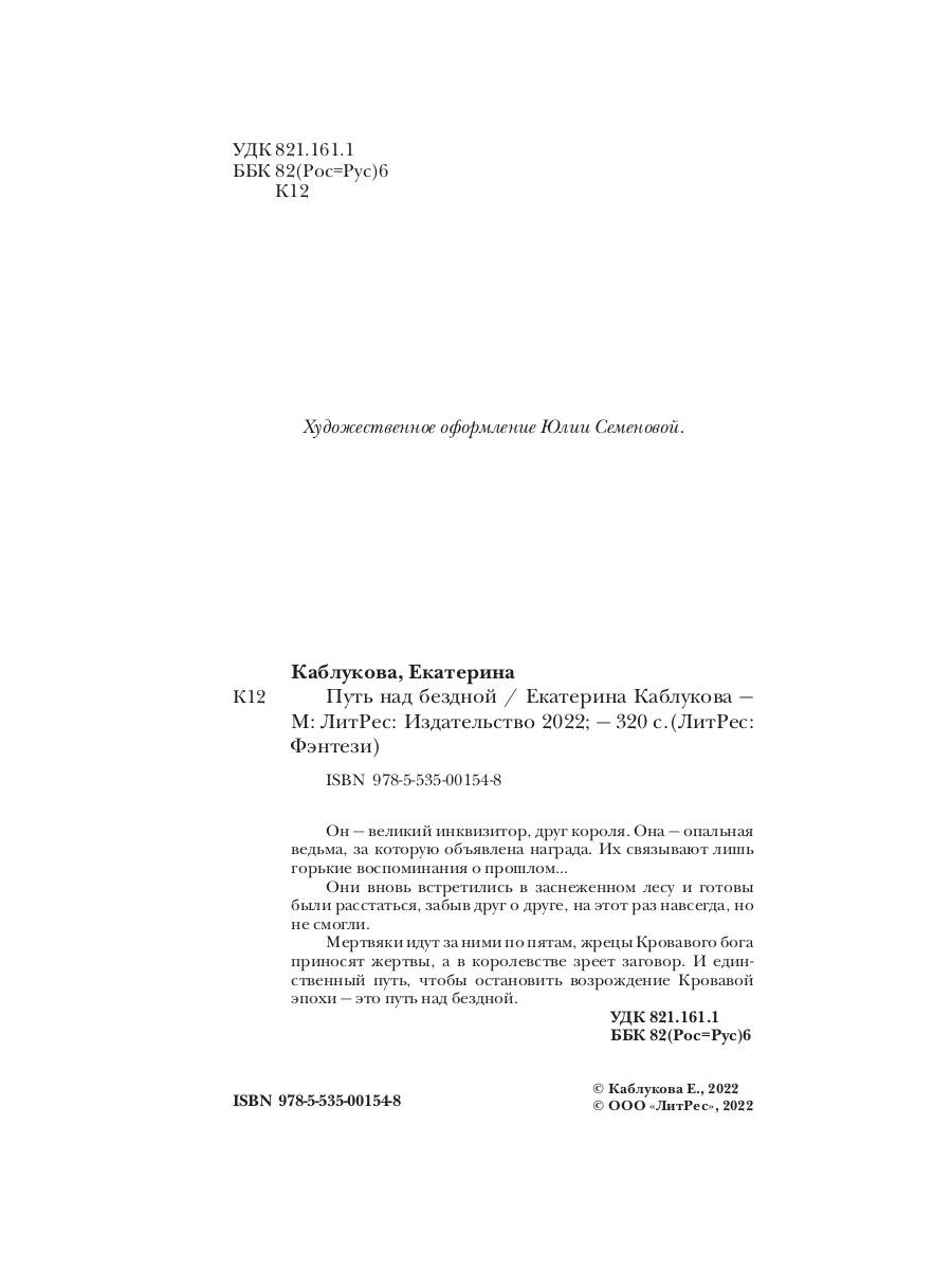 Он - великий инквизитор, друг короля. Она - опальная ведьма, за которую объявлена награда. Их связывают лишь горькие воспоминания о прошлом... Они вновь встретились в заснеженном лесу и готовы были расстаться, забыв друг о друге, на этот раз навсегда, но не смогли. Мертвяки идут за ними по пятам, жрецы Кровавого бога приносят жертвы, а в королевстве зреет заговор. И единственный путь, чтобы остановить возрождение Кровавой эпохи - это путь над бездной.| Издательство | Т8 RUGRAM |