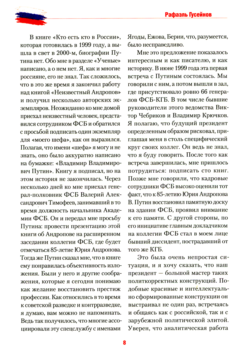 Журналист Рафаэль Гусейнов и писатель, историк Рой Медведев вспоминают о том, как Владимир Путин пришел в большую политику, чем запомнился своим согражданам и какое политическое будущее ему предрекают в России и за рубежом. В основу книги легли большие интервью и диалоги, которые авторы провели с ноября 2021 года. Эти продолжительные беседы позволят раскрыть новые краски в образе самого популярного российского политика XXI века. Книга богато иллюстрирована и адресована самому широкому кругу читателей.| Издательство | Вече |