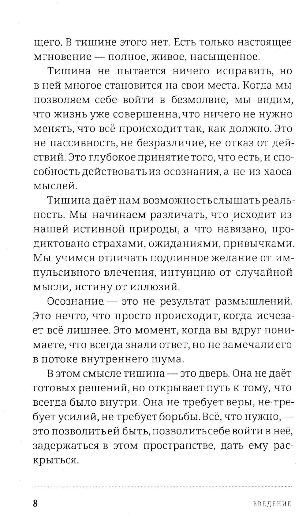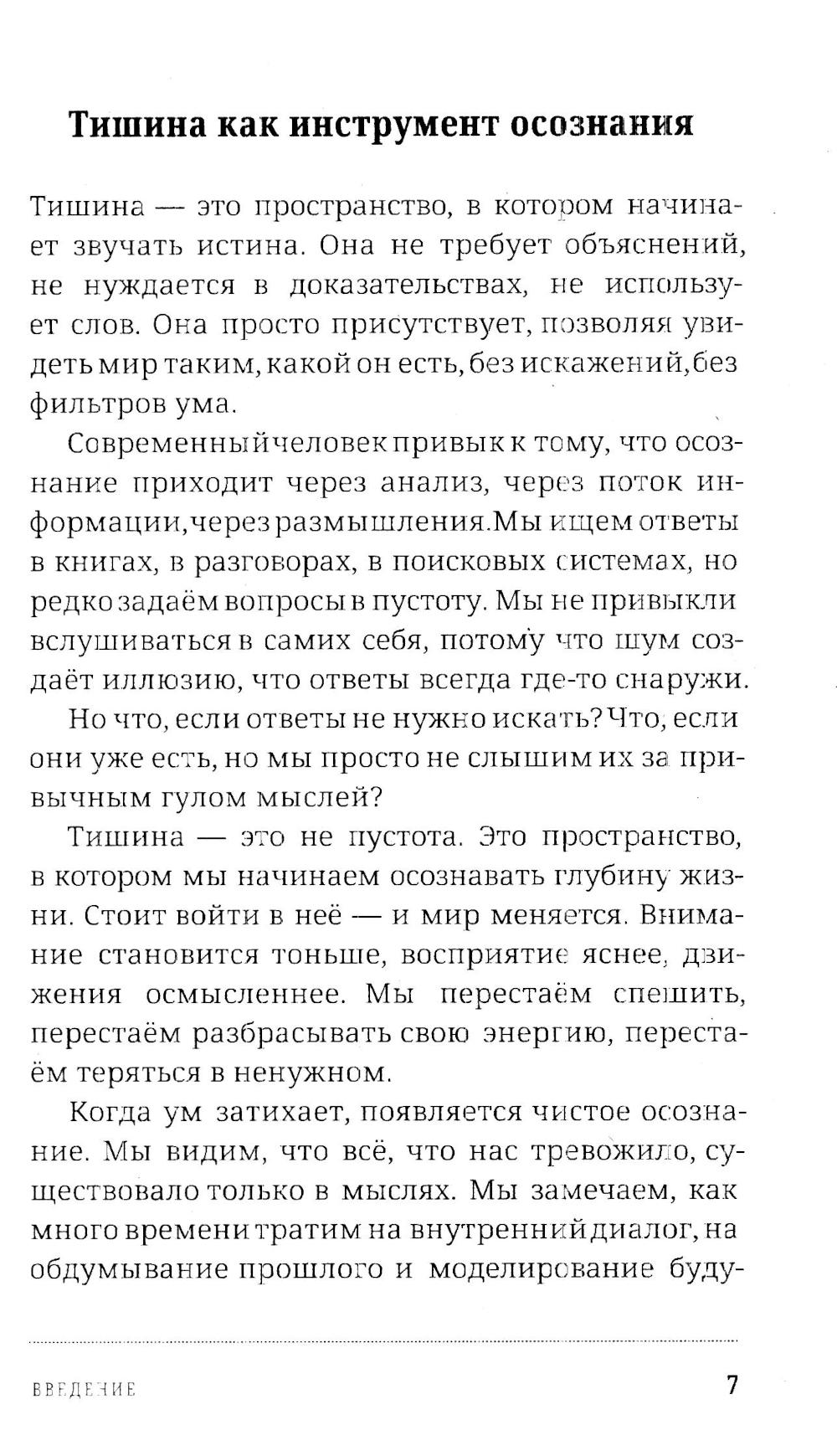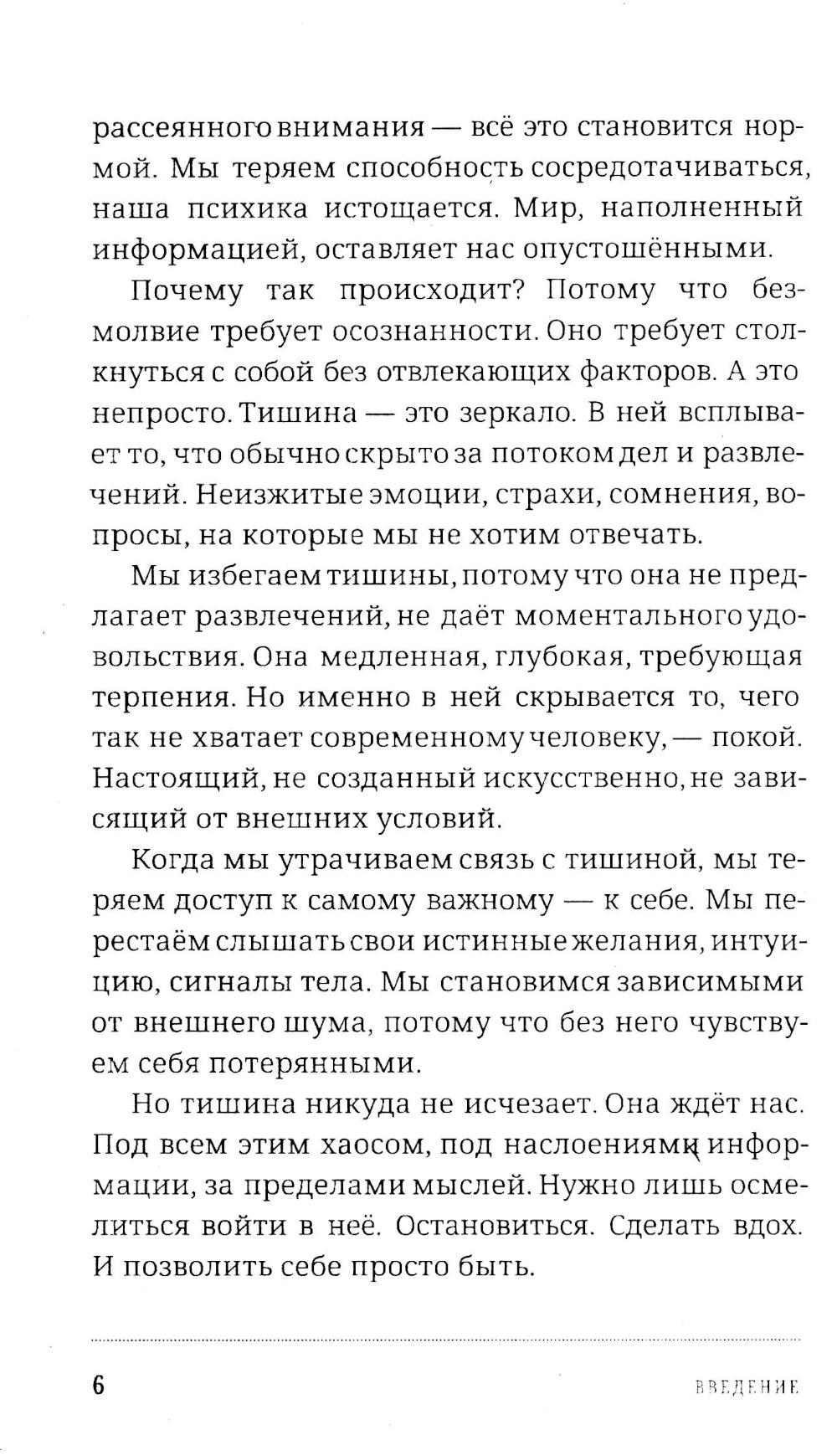 Это не просто размышления о спокойствии, а практическое руководство для тех, кто хочет научиться слышать себя без отвлекающих мыслей и эмоций. Эта книга поможет вам открыть двери к внутренней гармонии, понять ценность настоящего и научиться находить покой даже в самом шумном мире.| Издательство | Изд. Книга |