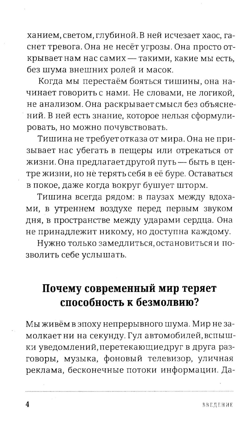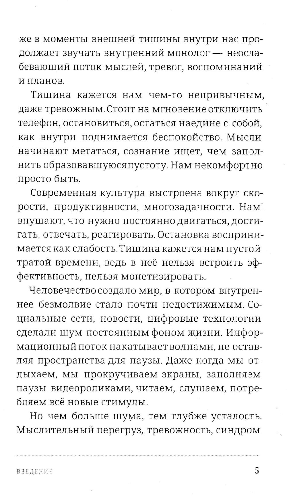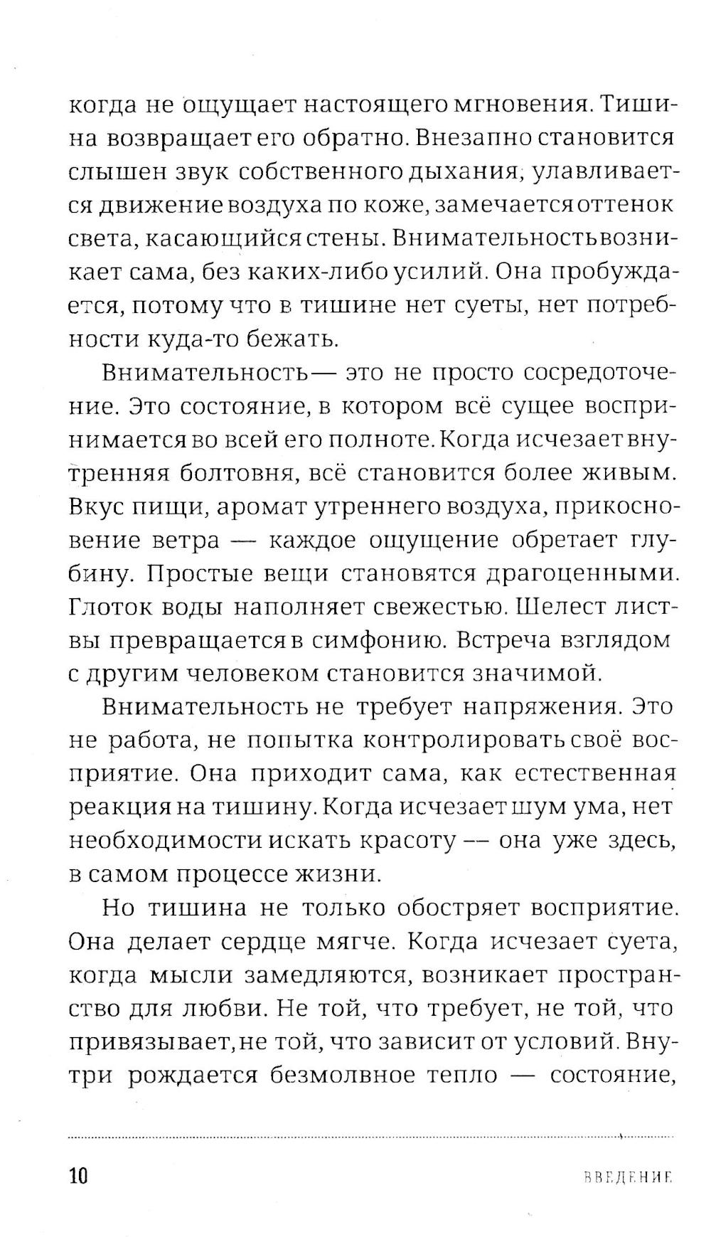 Это не просто размышления о спокойствии, а практическое руководство для тех, кто хочет научиться слышать себя без отвлекающих мыслей и эмоций. Эта книга поможет вам открыть двери к внутренней гармонии, понять ценность настоящего и научиться находить покой даже в самом шумном мире.| Издательство | Изд. Книга |