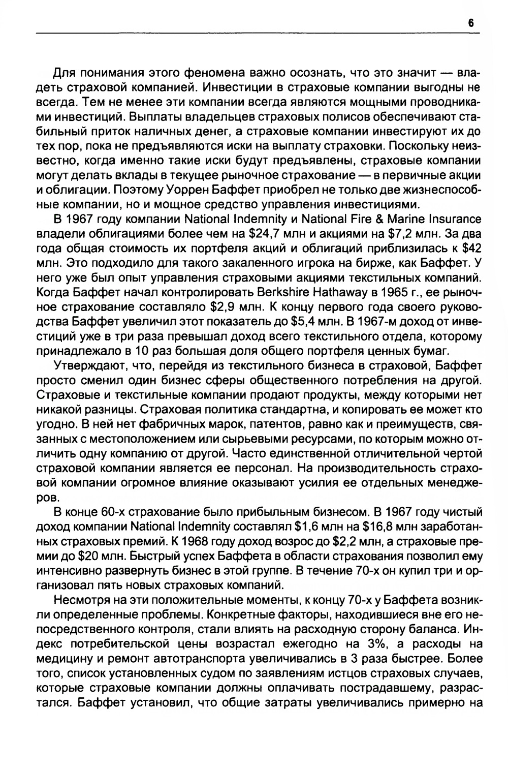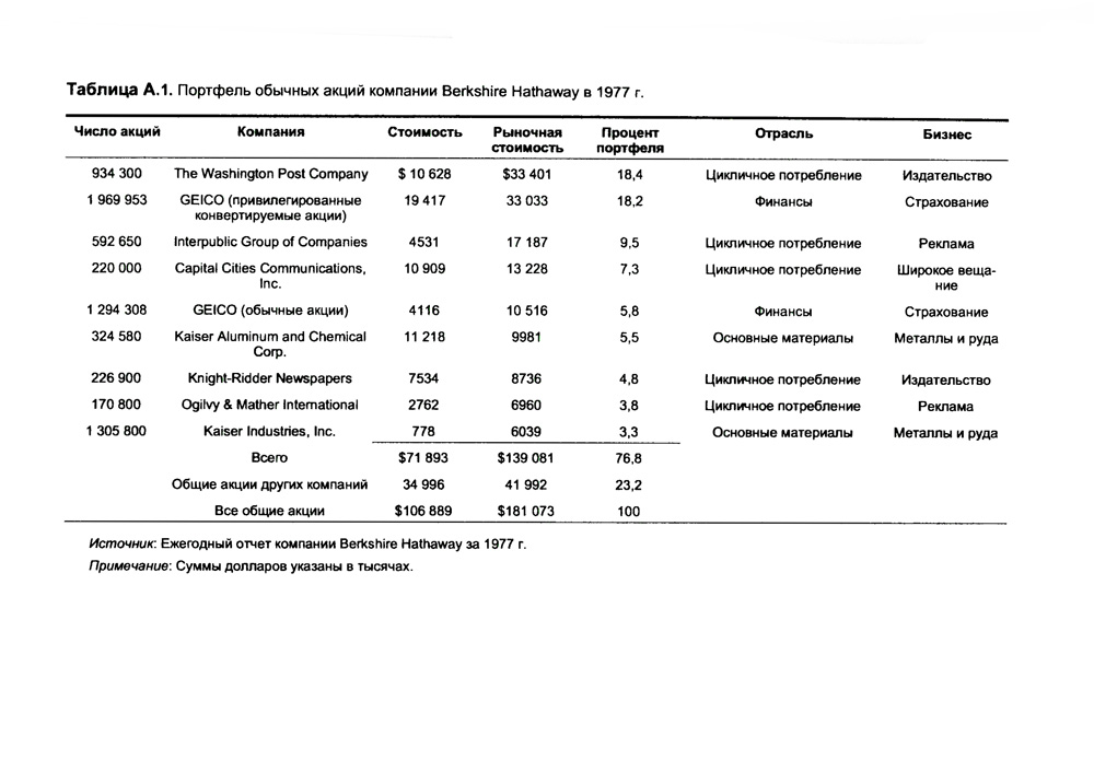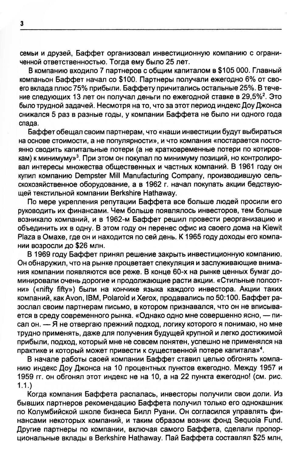 Я считаю, что в данной книге описан простой подход. В ней нет ни компьютерных программ, ни толстенных банковских инструкций по инвестициям. Независимо от того, способны вы купить 10% всей компании или только сотую долю ее акций, эта книга поможет вам получить доход от своей инвестиции. Однако не сравнивайте себя с Уорреном Баффетом. Его блестящие способности и ресурсы, его интуиция и опыт, накопленный за 40 лет инвестирования и владения различными видами бизнеса, вряд ли позволят вам повторить его результаты. Лучше сравнивайте свои результаты с достижениями в вашей собственной области бизнеса, независимо от того, идет ли речь об общих фондах, индексируемых акциях или рынке в целом.