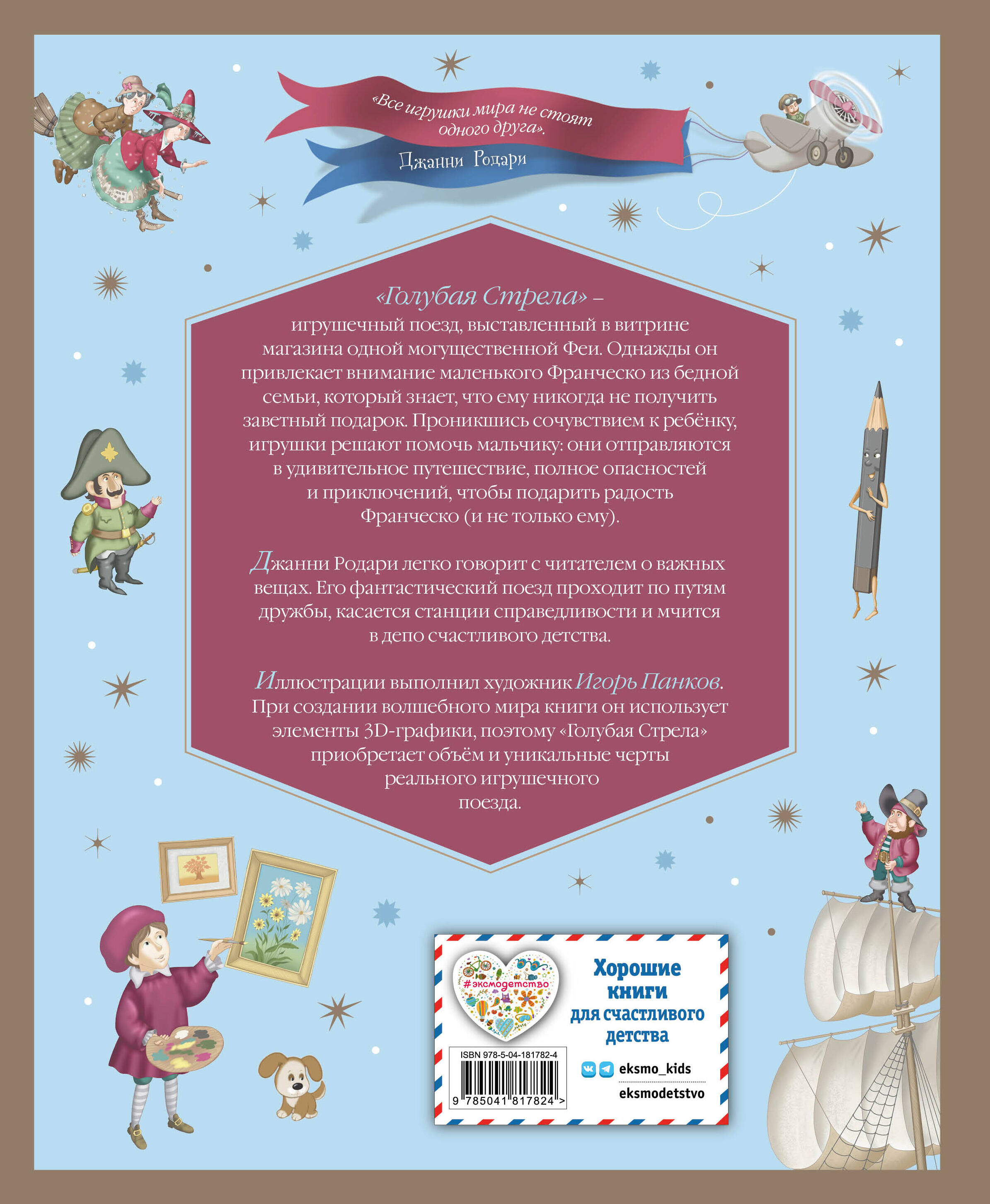 Все дети хотели бы получить подарки на Новый год, не так ли? В первое утро Нового года в Италии, где разворачиваются события книги, самые заветные желания детей исполняет Фея, но она не работает бесплатно. Мальчикам и девочкам, чьи родители не могут заплатить Фее, не стоит рассчитывать на новогодний подарок. Разве это справедливо? Игрушки в магазине Феи решаются на немыслимый поступок: на поезде «Голубая Стрела» они отправляются в удивительное путешествие, где находят новых друзей и помогают детям получить долгожданный подарок. Трогательная история, наполненная праздничными чудесами и волшебством. Динамичные иллюстрации известного художника Игоря Панкова великолепно передают новогоднее настроение и чарующую атмосферу известной сказки Джанни Родари.| Издательство | ООО "Издательство "Эксмо" |