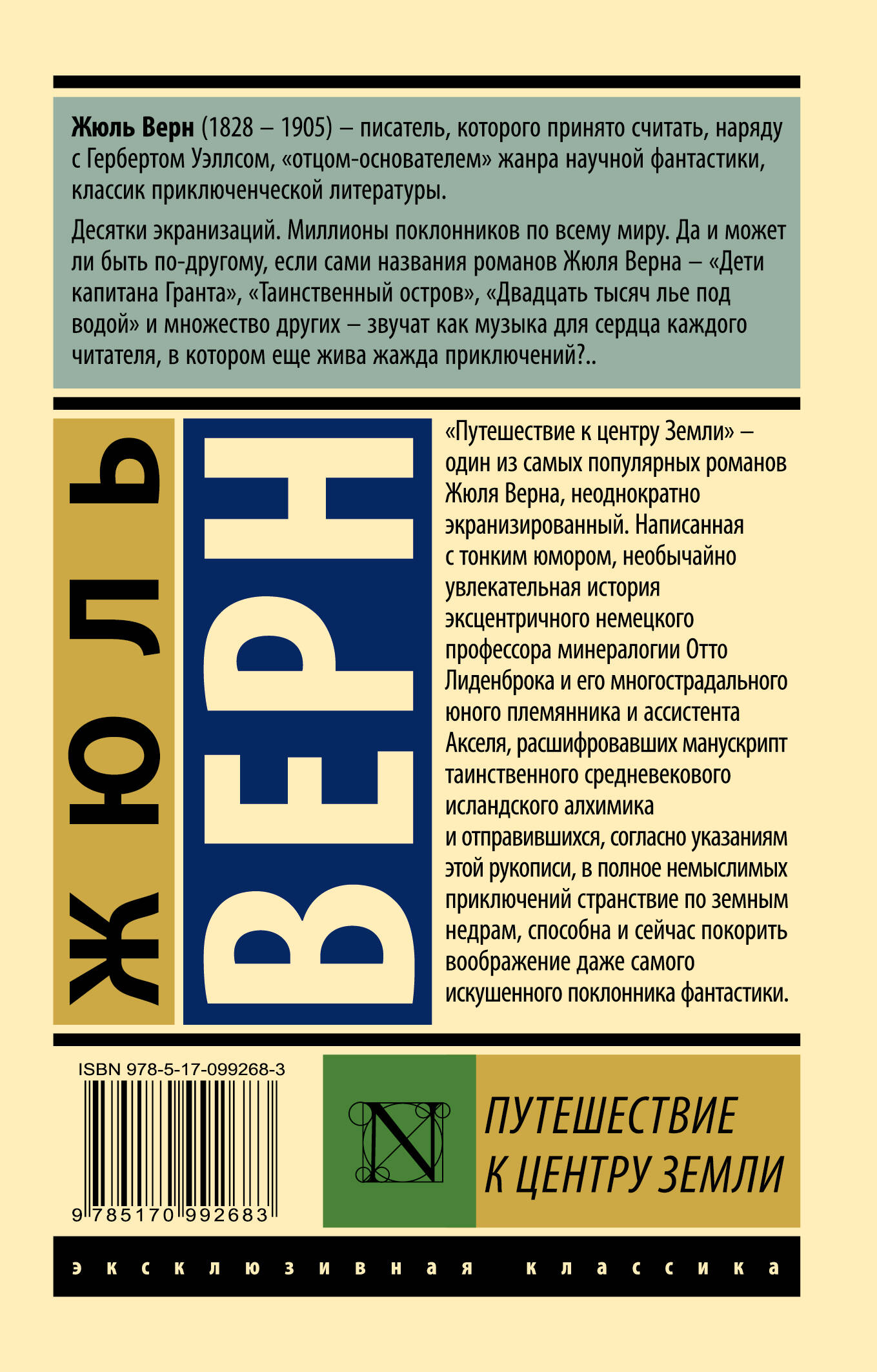 "Путешествие к центру Земли" - один из самых популярных романов Жюля Верна, неоднократно экранизированный. Написанная с тонким юмором, необычайно увлекательная история эксцентричного немецкого профессора минералогии Отто Лиденброка и его многострадального юного племянника и ассистента Акселя, расшифровавших манускрипт таинственного средневекового исландского алхимика и отправившихся, согласно указаниям этой рукописи, в полное немыслимых приключений странствие по земным недрам, способна и сейчас покорить воображение даже самого искушенного поклонника фантастики.| Издательство | ИЗДАТЕЛЬСТВО "АСТ" |