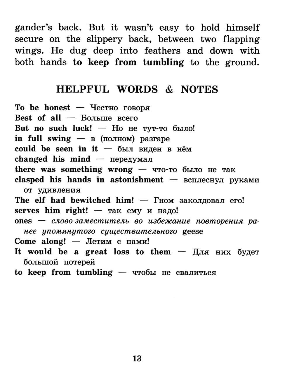 Книга представляет собой адаптацию сказочной повести знаменитой шведской писательницы Сельмы Лагерлёф (1858-1940) «Чудесное путешествие Нильса Хольгерссона по Швеции» на английском языке. Эта повесть, широко известная в нашей стране, явилась вершиной творчества писательницы, благодаря которой она получила мировое признание. В ней в увлекательной форме рассказывается о мальчике Нильсе, заколдованном гномом и ставшем очень маленьким, который вместе со стаей диких гусей путешествует по всей Швеции на спине гуся Мартина. Данное пособие разработано в соответствии с новыми требованиями Федерального государственного образовательного стандарта (ФГОС). Оно поможет учащимся начальной школы подготовиться к обязательному для каждого ученика итоговому экзамену по английскому языку в новом формате. После каждой главы пособия следуют комментарий и перевод трудных слов и выражений, а также упражнения, которые учитывают новые требования итоговой аттестации. Они направлены не только на проверку понимания текста, но и на отработку лексики, грамматики, а также развитие умений чтения, аудирования, устной речи, письма. Упражнения имеют два уровня сложности, что даёт возможность каждому ученику продемонстрировать свой уровень знаний и умений. В конце книги даны словарь, тест в формате итогового экзамена за 4-й класс, включающий задания по аудированию, а также ответы ко всем упражнениям и тестовым заданиям. Пособие адресовано учащимся 3-4 классов образовательных учреждений, а также широкому кругу лиц, изучающих английский язык.