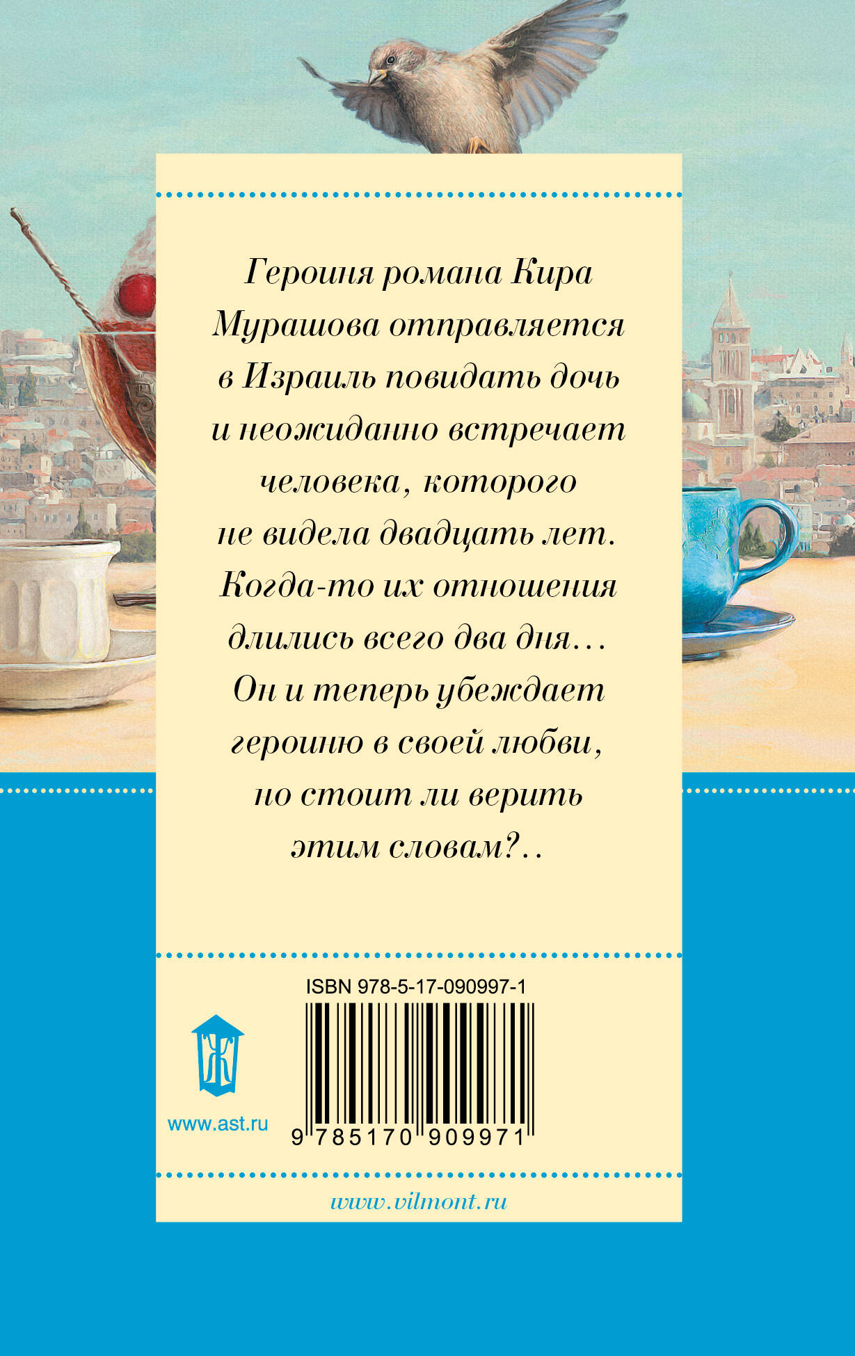 Героиня романа Кира Мурашова отправляется в Израиль повидать дочь и неожиданно встречает человека, которого не видела двадцать лет. Когда-то их отношения длились всего два дня... Он и теперь убеждает героиню в своей любви, но стоит ли верить этим словам?..| Издательство | Издательство "АСТ" |