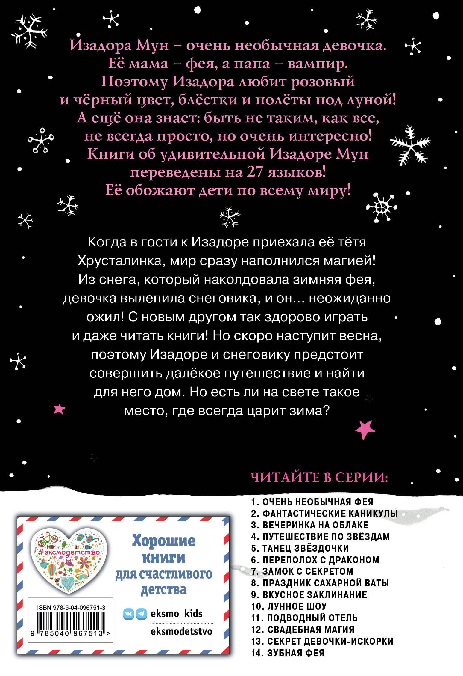 Изадора и не сомневалась, что эти выходные станут самыми волшебными в её жизни! Ну ещё бы! Когда в гости приезжает её тётя, зимняя фея, чудеса случаются на каждом шагу. Деревья одеваются в белый наряд, во дворе появляется каток, а снег становится волшебным! И если слепить из этого снега снеговика, то он… оживёт! Изадора ужасно рада познакомиться со Снежным Мальчиком! Но есть одна проблема: с наступлением весны он наверняка растает! А это значит, что нужно срочно найти для него дом, где холод царит круглый год. Кажется, друзьям предстоит совершить долгое путешествие… Гарриет Манкастер - всемирно известная писательница и иллюстратор, книги которой переведены на 32 языка! Эта книга учит доброте, чуткости и рассказывает, как важно помогать другим. Чудесные чёрно-розовые иллюстрации на каждой странице и блестящая обложка с глиттером - вот она, магия! Внутри вас также ждут рецепты вкусного какао, волшебного леденца и печенья в виде снежинки.