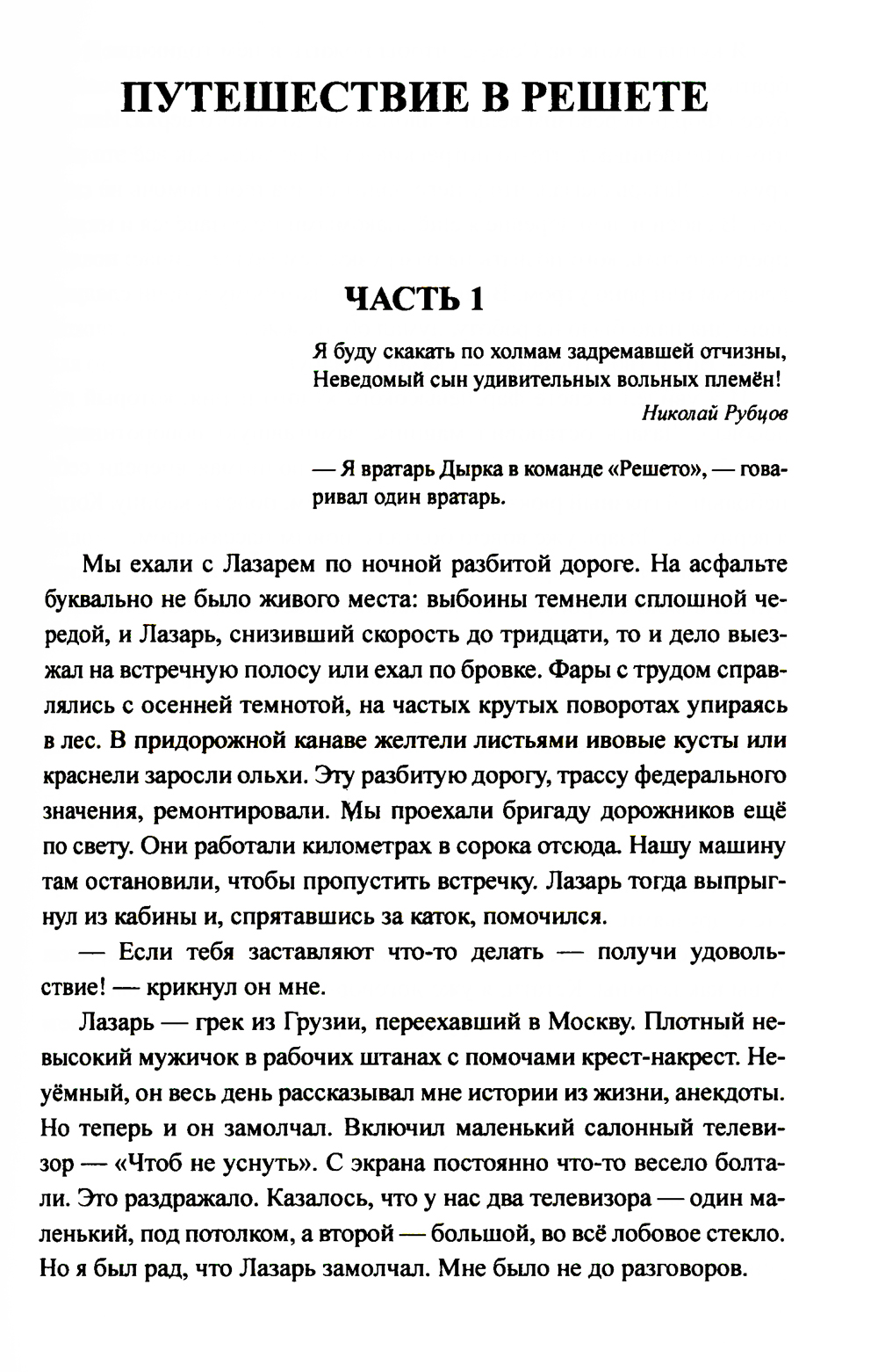 «Путешествие в решете» - это повесть о человеке, получившем травму головы во время войны в Чечне. Из ада его выгнали, а в рай не пустили. Отправляясь в странствие, он пересекает Россию с севера на юг. Вокруг кипят события, переселяются люди, в деревнях возникают поселения свободных граждан, покинувших большие города, даже бомжи потянулись на море. И у каждого своя судьба и своя интересная история... В книгу также включены избранные рассказы о деревенской жизни.| Издательство | Вече |