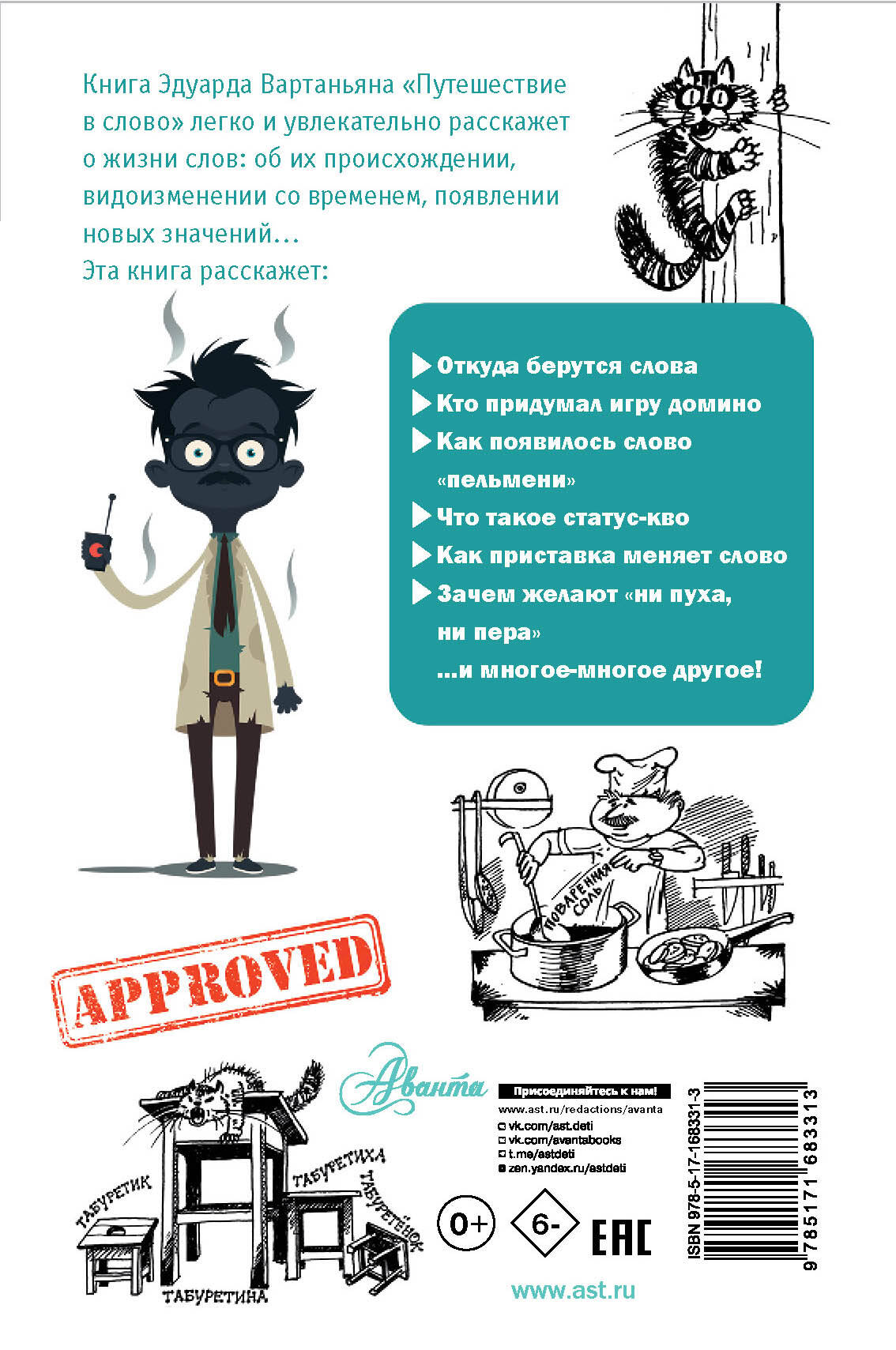"Путешествие в слово" - это необыкновенно увлекательная книга Эдуарда Вартаньяна, рассказывающая о жизни слов - об их происхождении (этимологии), видоизменении со временем, появлении новых значений… Ведь русский язык, на котором говорили сто или двести лет назад, здорово отличается от современного. Как возникают новые слова? Откуда берутся заимствования? Что такое фразеологизмы и зачем желают "ни пуха ни пера"? Кто придумал слово "миллион" и почему пельмени так называются? Обо всём этом и многом другом нам поведает автор. Для среднего школьного возраста.| Издательство | Издательство "АСТ" |