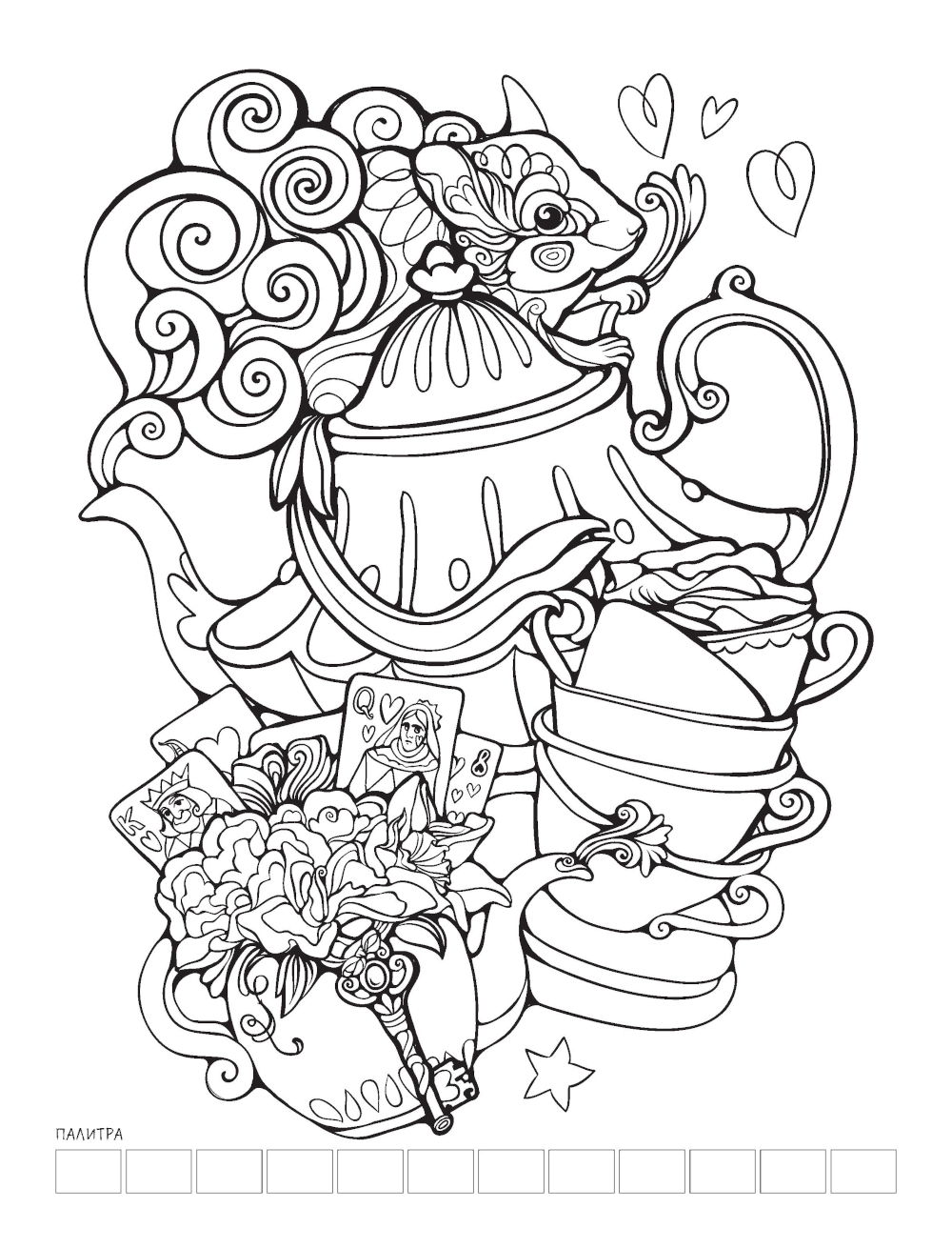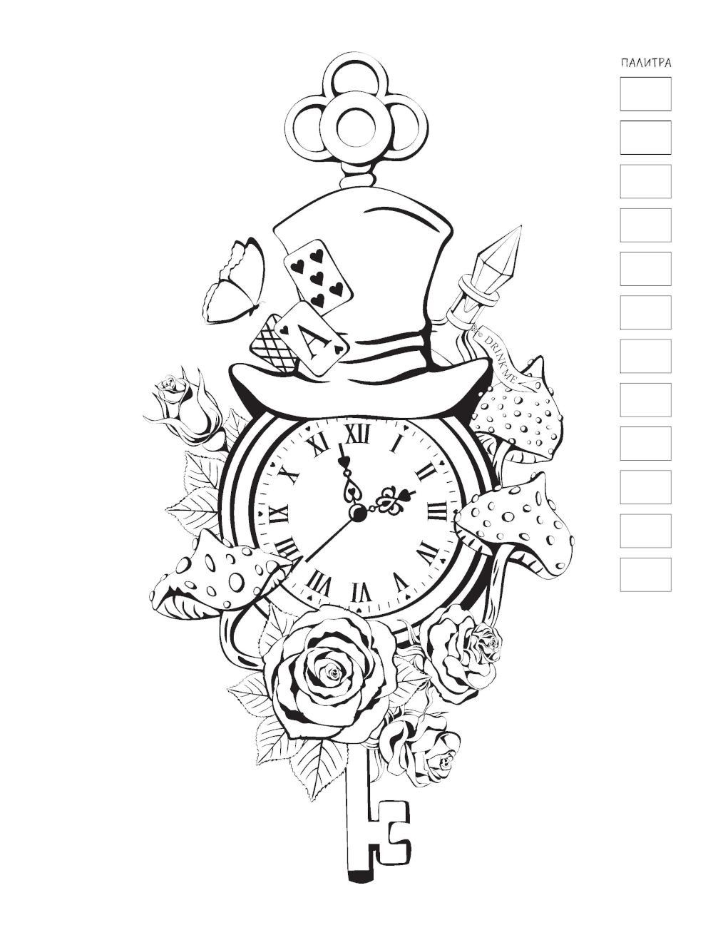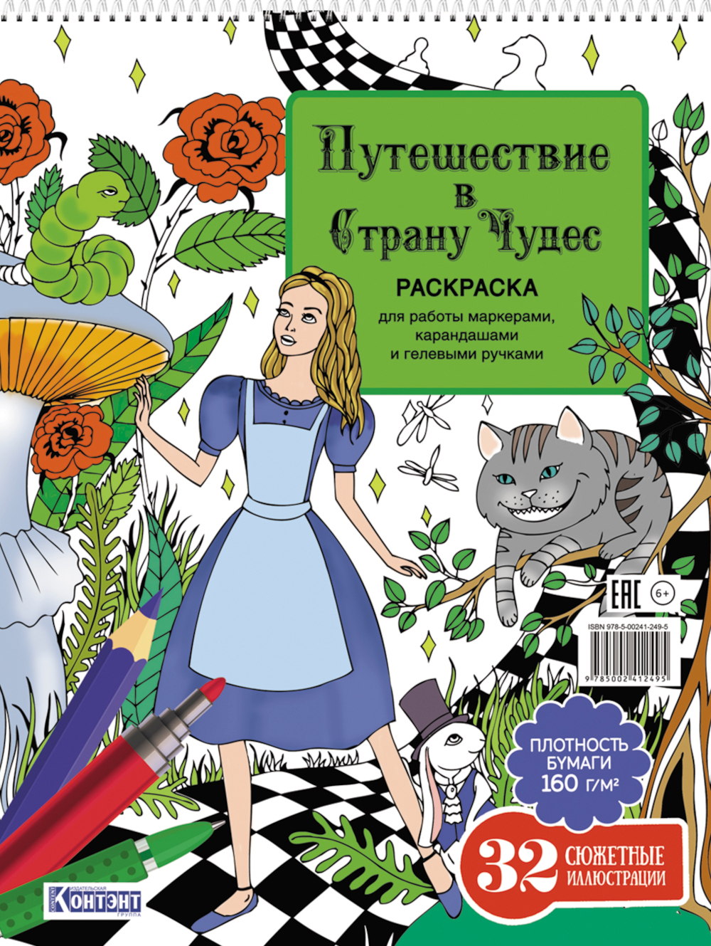 Раскраска по мотивам приключений Алисы в Стране Чудес перенесёт вас волшебный мир загадок и тайн. Издание включает в себя 32 удивительных проекта для работы маркерами, цветными карандашами и гелевыми ручками. Практичный формат, удобное скрепление на пружине, очень плотная бумага, атмосферные иллюстрации - отличный способ расслабиться и погрузиться в творчество в компании любимых героев. Следуйте за Белым кроликом и раскрашивайте с удовольствием!