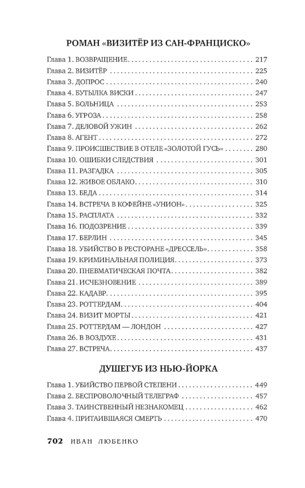 «Путешествие за смертью» - бестселлер, созданный в лучших традициях исторического детектива известным писателем Иваном Любенко. Знаменитый детектив Клим Ардашев продолжает свои расследования и в эмиграции. В книге «Могильщик из Таллина» рассказано о загадочной гибели органиста церкви Святого Олафа и пропаже складного золотого алтаря из музея братства Черноголовых. На страницах романов «Визитёр из Сан-Франциско» и «Душегуб из Нью-Йорка» частный сыщик путешествует по Европе, пересекает Атлантический океан и вступает в схватку не только с нью-йоркской мафией, но и со злым гением Морлоком, чьи преступления тесно связаны с событиями в России. Впервые все три романа исторического детективного цикла «Путешествие за смертью» публикуются в одной книге.| Издательство | Яуза |