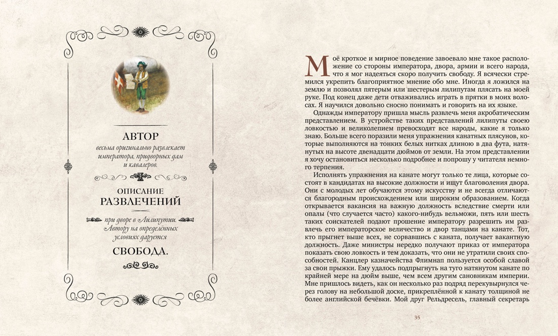 Знаменитый роман английского писателя Джонатана Свифта - шедевр мировой литературы. Великолепные иллюстрации австралийского художника Роберта Ингпена вдыхают жизнь в образы героев этого бессмертного произведения. Р. Ингпен - признанный мастер книжной иллюстрации, создавший замечательные рисунки для сотни книг. В 1986 году он был удостоен Международной премии имени Х. К. Андерсена за вклад в детскую литературу. Р. Ингпен проиллюстрировал такие произведения классической литературы, как «Остров Сокровищ», «Книга джунглей», «Алиса в Стране чудес», «Алиса в Зазеркалье», «Приключения Тома Сойера», «Питер Пэн и Венди», «Ветер в ивах», «Рождественская ёлка», «Вокруг света в восемьдесят дней», «Таинственный сад», «Приключения Пиноккио», «Щелкунчик», «Удивительный волшебник из страны Оз», «Путешествия Гулливера», «Сказки» Киплинга. Издательство «Махаон» представляет вам эти замечательные книги.