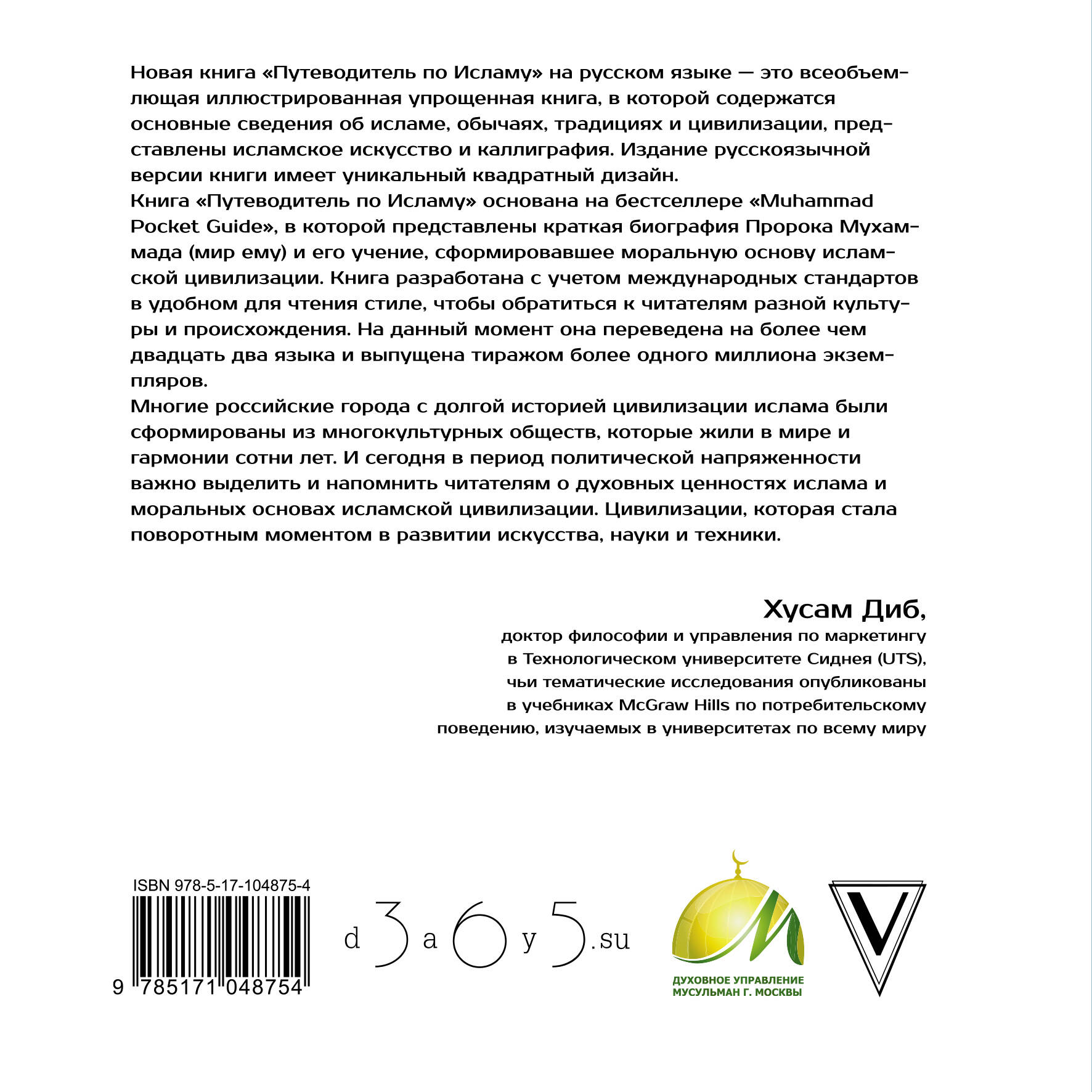 Книга «Путеводитель по Исламу» на русском языке - это всеобъемлющая иллюстрированная упрощенная книга, в которой содержатся основные сведения об исламе, обычаях, традициях и цивилизации, представлены исламское искусство и каллиграфия. Издание русскоязычной версии книги имеет уникальный квадратный дизайн. На данный момент она переведена на более чем двадцать два языка и выпущена тиражом более одного миллиона экземпляров. Книга «Путеводитель по Исламу» основана на бестселлере «Muhammad Pocket Guide», в которой представлены краткая биография Пророка Мухаммада (мир ему) и его учение, сформировавшее моральную основу исламской цивилизации. Книга разработана с учетом международных стандартов в удобном для чтения стиле, чтобы обратиться к читателям разной культуры и происхождения. На данный момент она переведена на более чем двадцать два языка и выпущена тиражом более одного миллиона экземпляров.| Издательство | ИЗДАТЕЛЬСТВО "АСТ" |