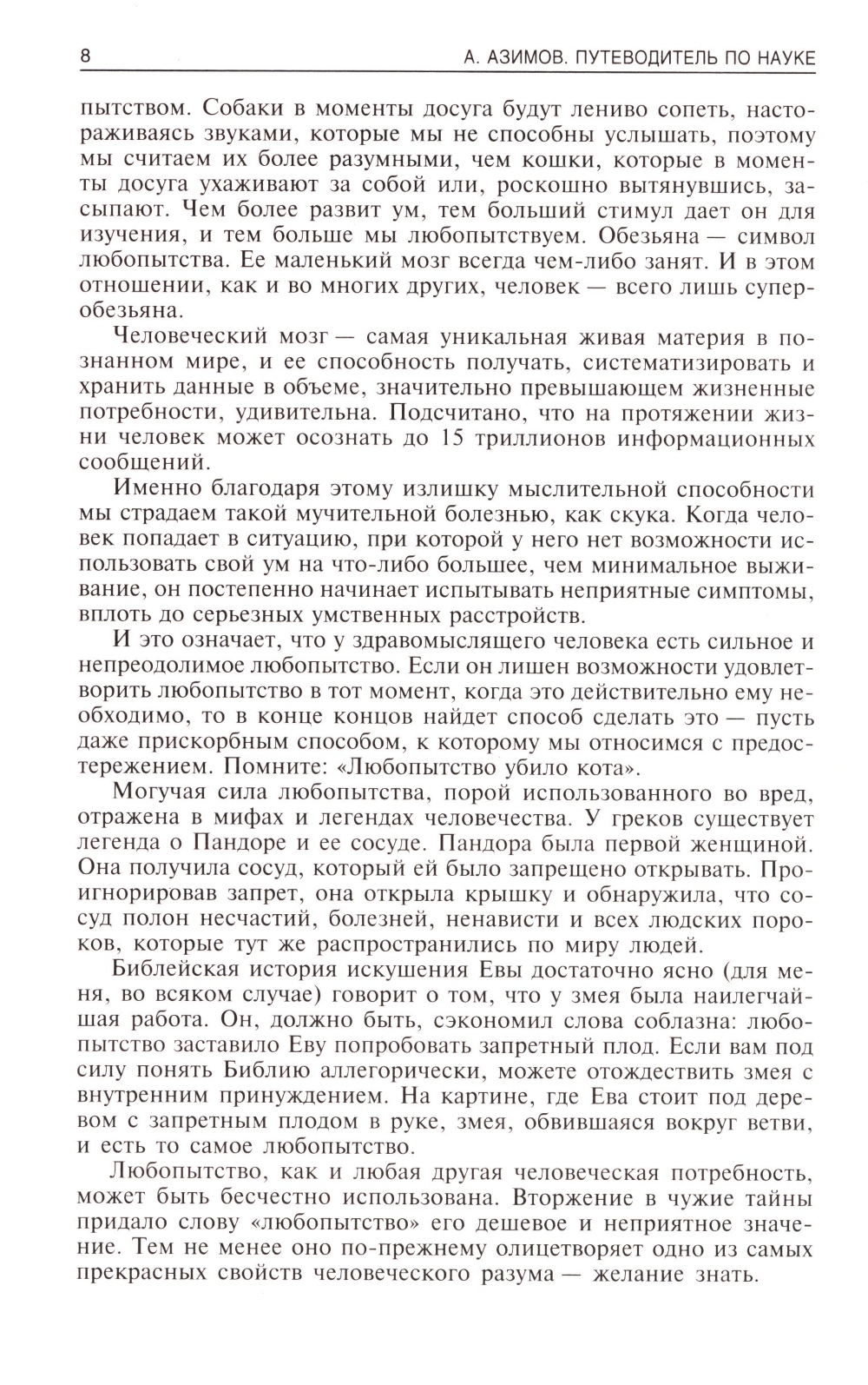 Знаменитый писатель-фантаст, ученый с мировым именем, великий популяризатор науки, автор около 500 научно-популярных, фантастических, детективных, исторических и юмористических изданий приглашает вас в увлекательный мир науки. Его книга - путеводитель по этому миру. Вы узнаете, как был изобретен маятник и что такое цепная реакция, как люди изучали законы природы и боролись с вирусами. Автор расскажет вам, как с помощью астрономии, физики, химии, геологии, океанографии и других наук изучают Вселенную, звездные скопления, Солнечную систему и нашу планету. На страницах книги разворачивается славная история научной мысли, предстают великие умы прошлого: Коперник, Ньютон, Кюри, Фара-дей, Эйнштейн.| Издательство | Центрполиграф |