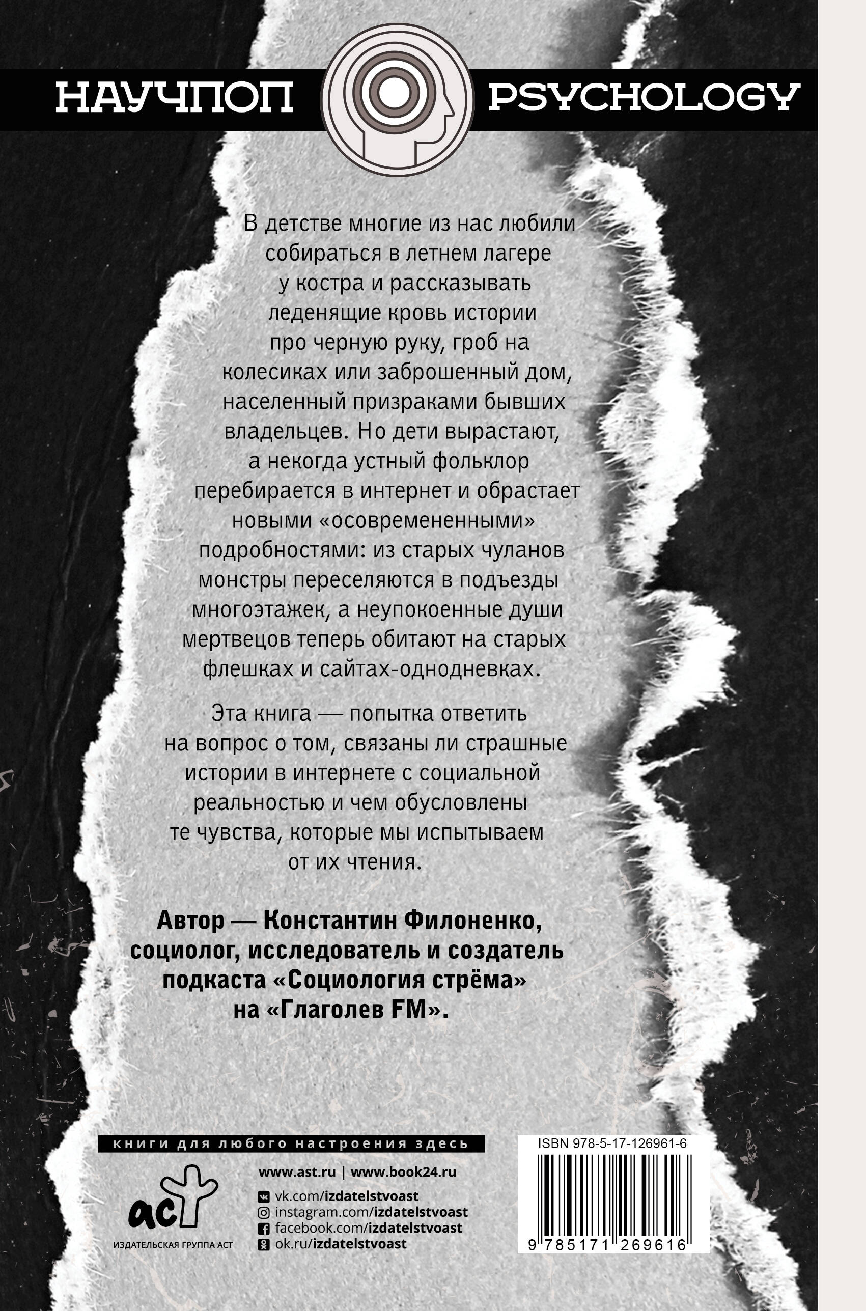 Эта книга - попытка ответить на вопрос о том, связаны ли страшные истории в интернете с социальной реальностью и чем обусловлены те чувства, которые мы испытываем от их чтения. Автор - Константин Филоненко, социолог, исследователь и создатель подкаста «Социология стрёма» на «Глаголев FM».| Издательство | ИЗДАТЕЛЬСТВО "АСТ" |