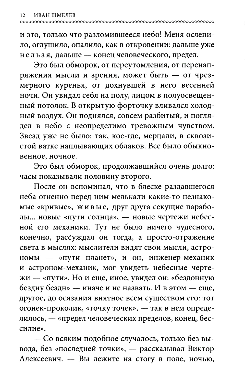 Иван Сергеевич Шмелёв (1873-1950) - русский писатель и публицист, дважды номинант Нобелевской премии; прозван «православным литератором» за большое число текстов о духовности русского человека. Находясь в эмиграции, «ни на минуту в своем душевном горении он не перестает думать о России и мучиться ее несчастьями». В романе «Пути небесные», замысел третьего тома которого из-за смерти писателя так и не был воплощен в жизнь, отражена реальная история любви между инженером В.А. Вейденгаммером и послушницей Страстного монастыря Даринькой Королевой, ради него покинувшей свою обитель. Благодаря этой встрече религиозному скептику-позитивисту Виктору неожиданно открылся неведомый ему прежде мир. Поддерживаемый сильной духом и искренней в своей вере возлюбленной, он сумел встать на путь прозрения. Автор натуралистично изобразил развитие духовного чувства, начавшегося с познания об искуплении греха и покаяния и приведшего к Источнику жизни. В основе раскрытия судеб и характеров героев было положено аскетическое мировоззрение, традиции которого не были присущи светской культуре XIX-XX веков.| Издательство | Омега-Л |